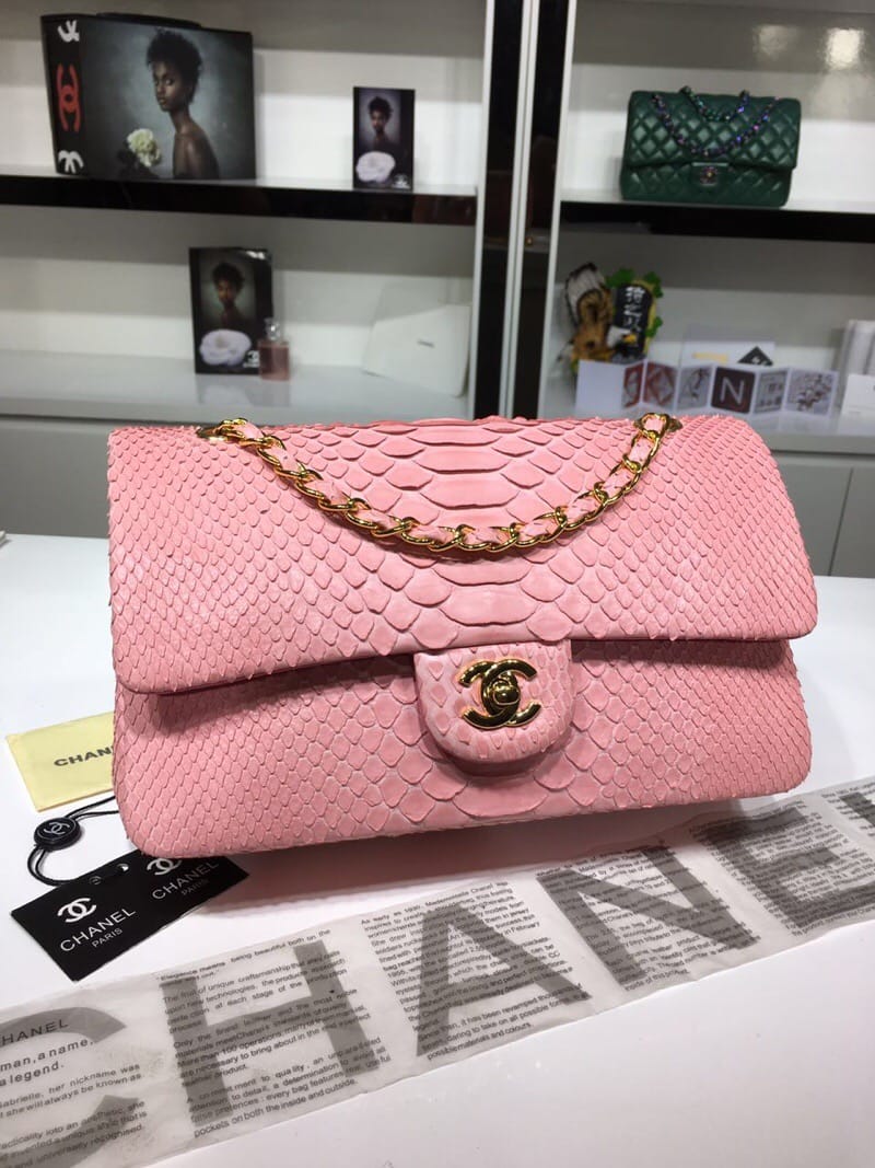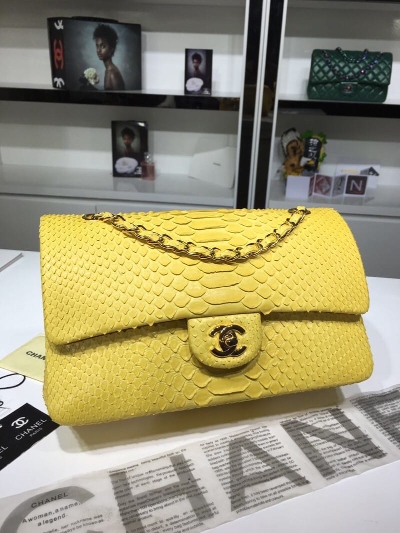 A01112最新CF经典款大蟒蛇皮配鹿皮单肩链条口盖包