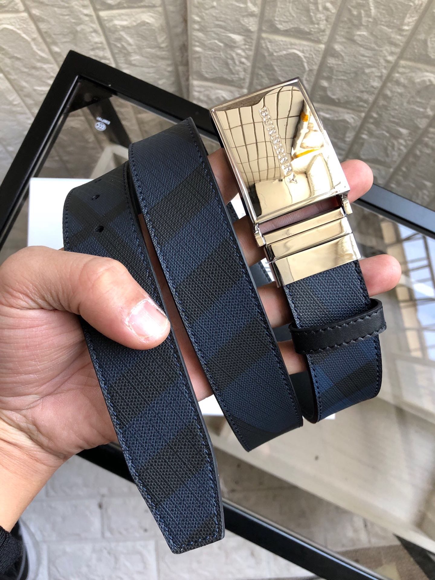 {巴宝莉}男士皮带!原单面料,内衬头层小牛皮底.搭配原单旋转扣头,原单皮料定制?宽度3.5