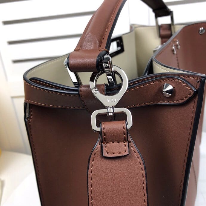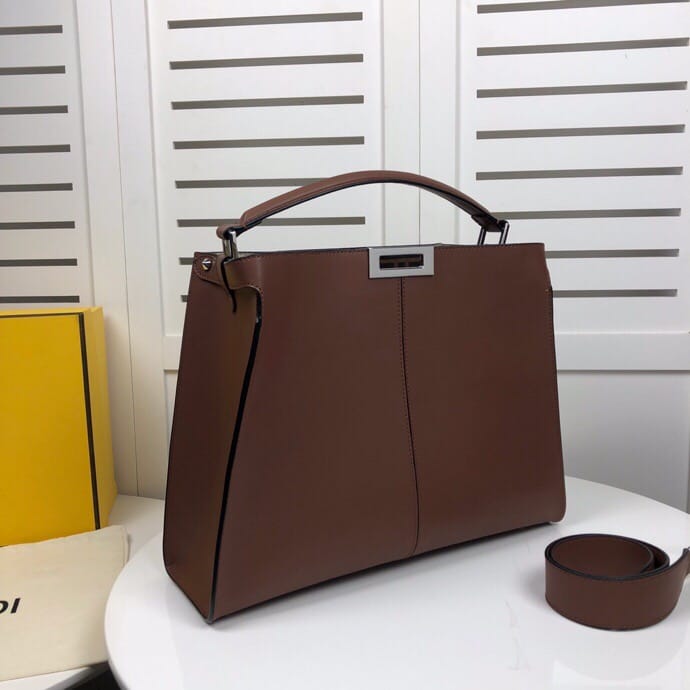 FEND1.柔软轻盈的大型手提包。宽敞的内侧隔层有平口袋。单手柄和牛角锁。牛皮制成皮料质感超好全新包型更时尚内部空间大厚实手腕.F布内袋。镀金表面金属制品。款号0818 意大利制造尺寸38cn。