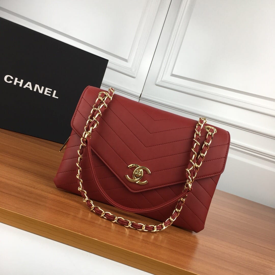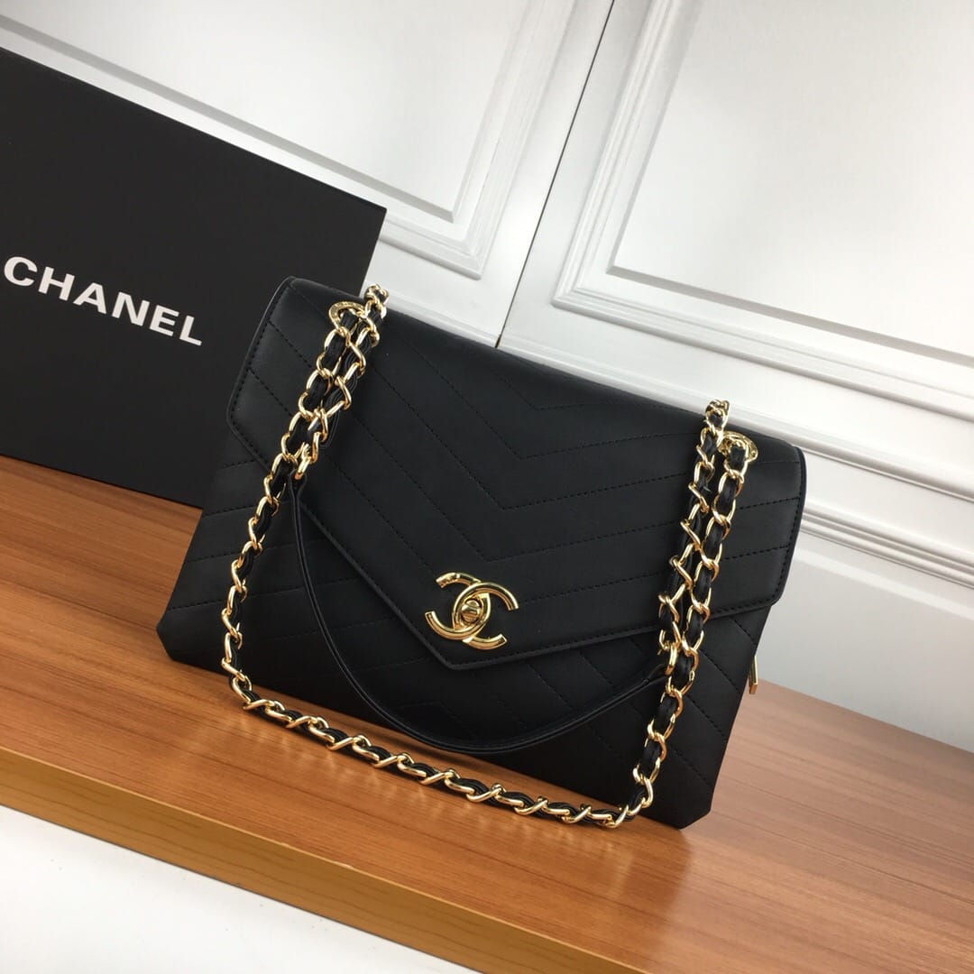 柔软小羊皮信封包 链条设计可以手提、斜挎、单肩 羊皮衬里61114# 金扣 尺寸26-17-8cm