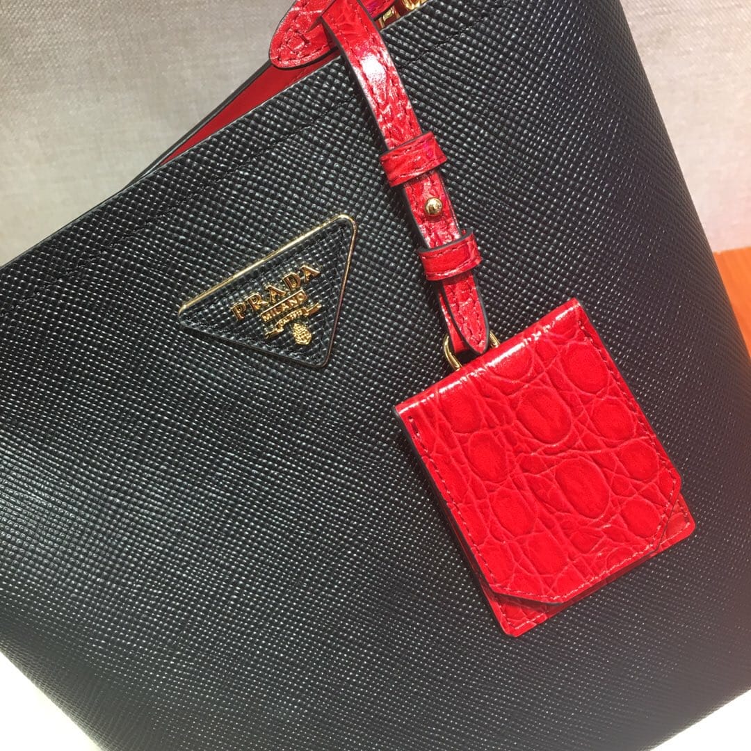 1新款1BA212????,原单货??采用进口Double Saffiano皮革手袋饰有撞色鳄鱼牛皮细节,进口软羊革衬里在色彩上相映成趣,彰显优雅设计??手袋配有一条可拆长肩带,两个主要隔层和一个中袋,磁扣扣合,显得格外时尚大气??,又是一个爆款????,长22X高23x底13cm