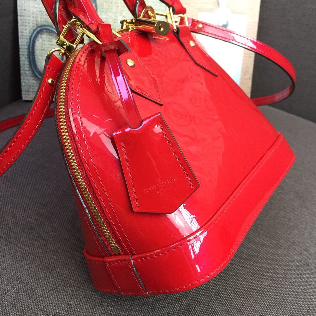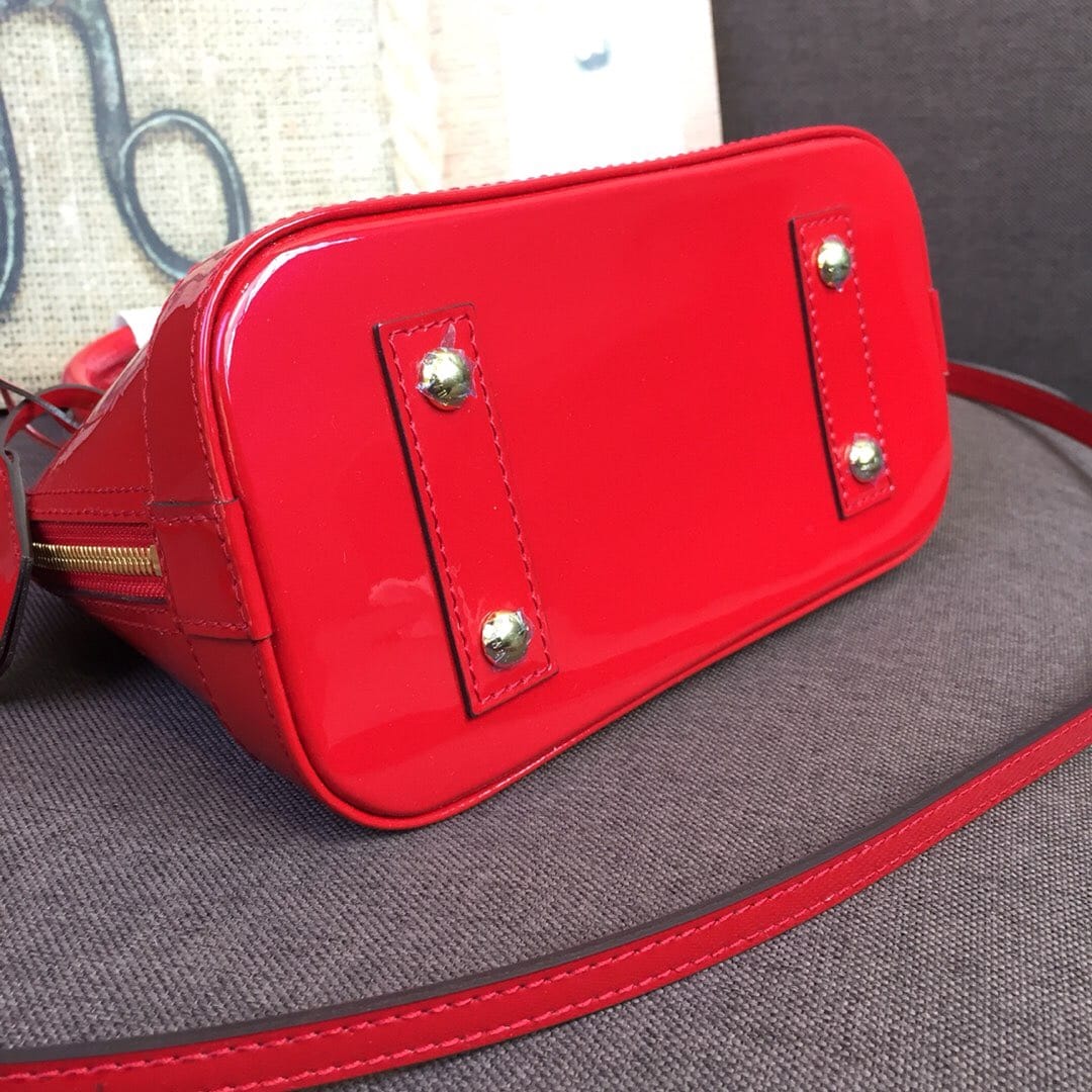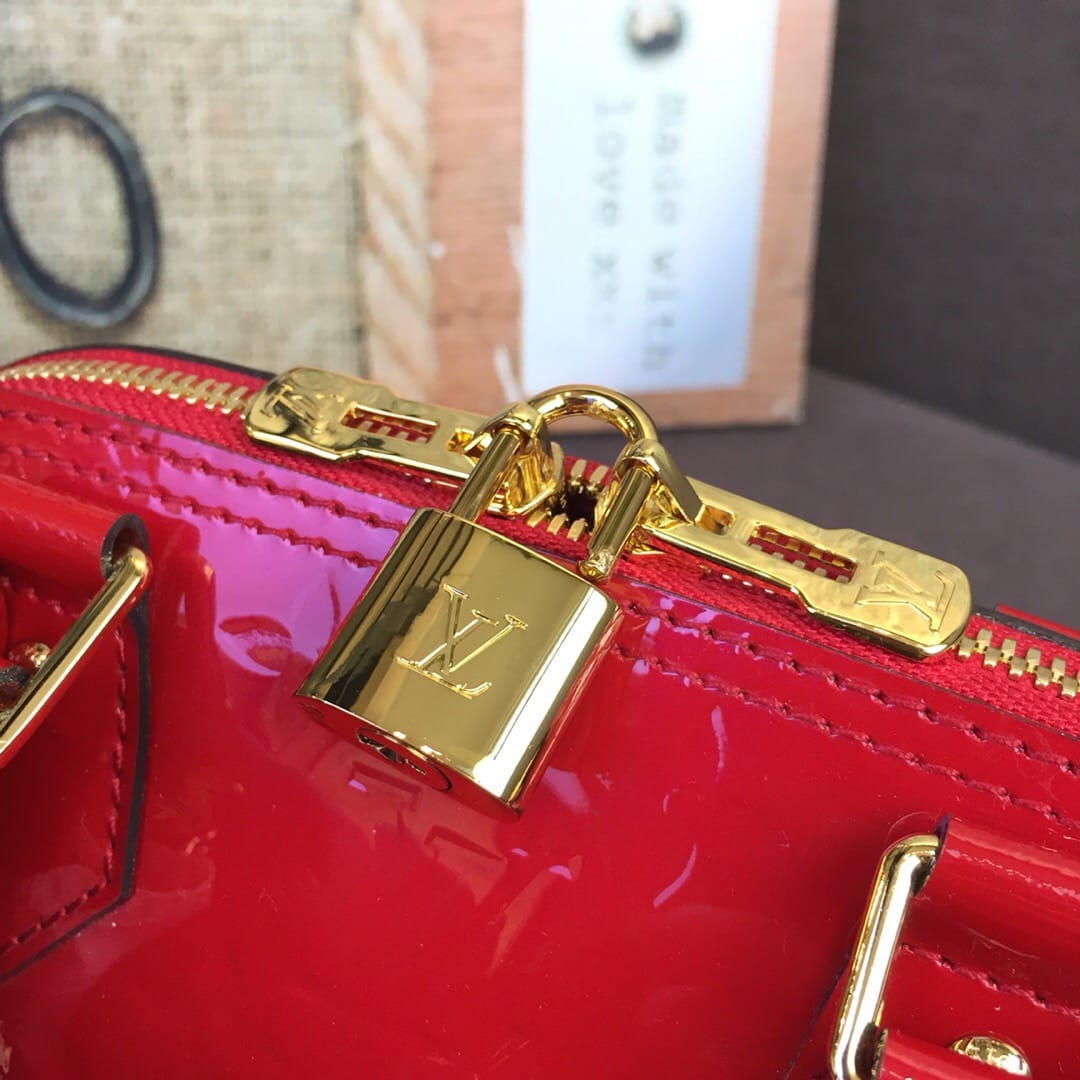 ALMA BB 贝壳挎包 M91678 此款Alma BB手袋源于1934年设计的路易威登经典包款,2010年,在Alma包款正式推出20年之际,特为拥有此款手女士的女儿设计迷你型号,并赋予Alma 更为年轻的精神。这款采用光亮的Monogram Vernis制成的迷你款手袋可轻松装纳钥匙、钱包、手机及唇膏等物品。Alma BB手袋配有一根可拆卸的背带,用于轻便斜挎。-可拆卸肩带,可手提或肩背-双拉链开合,取物更方便-1个扁平内袋-底部金属铆钉保护手袋-size24*12*18??