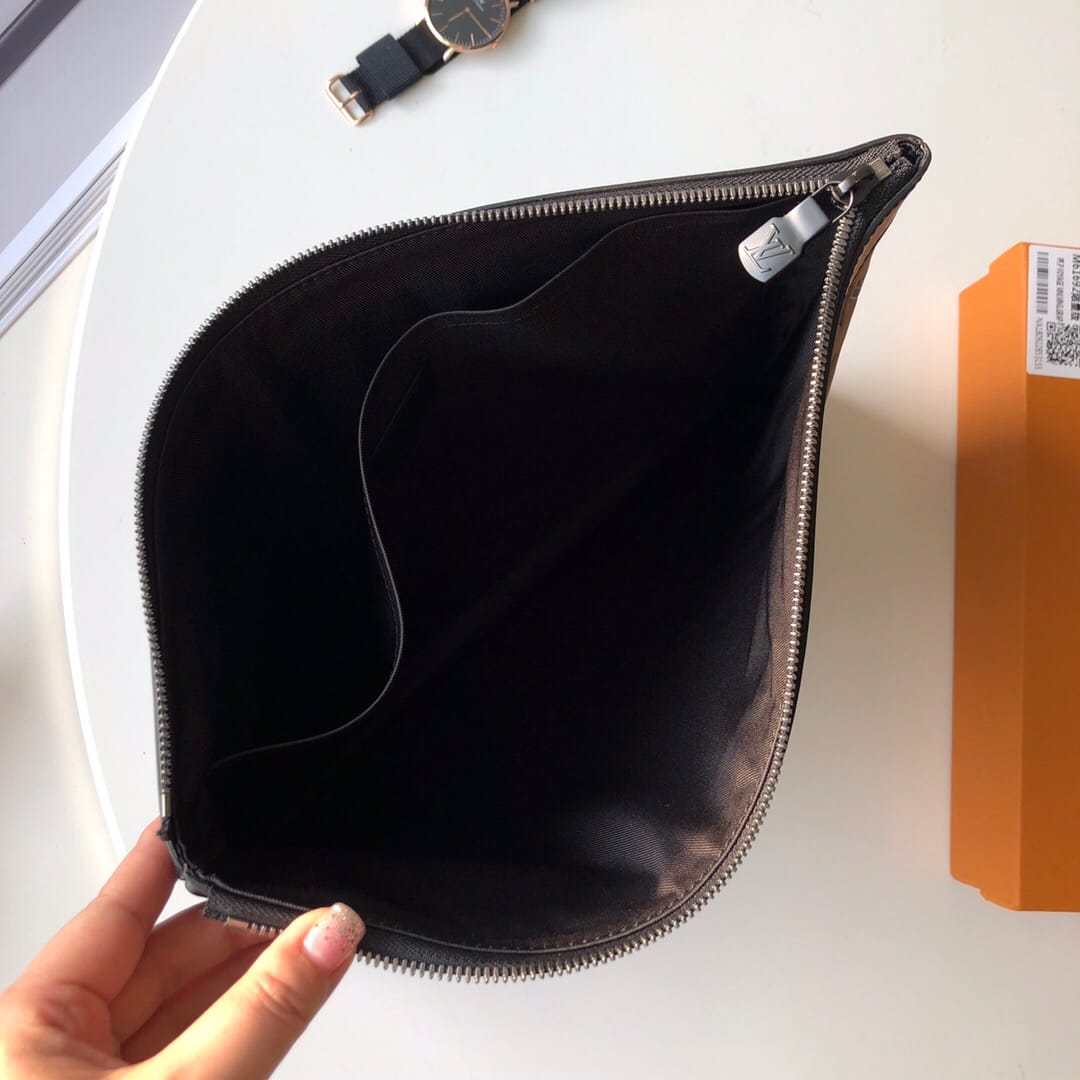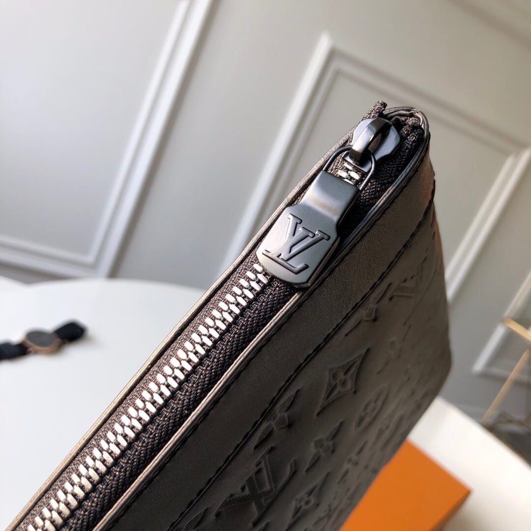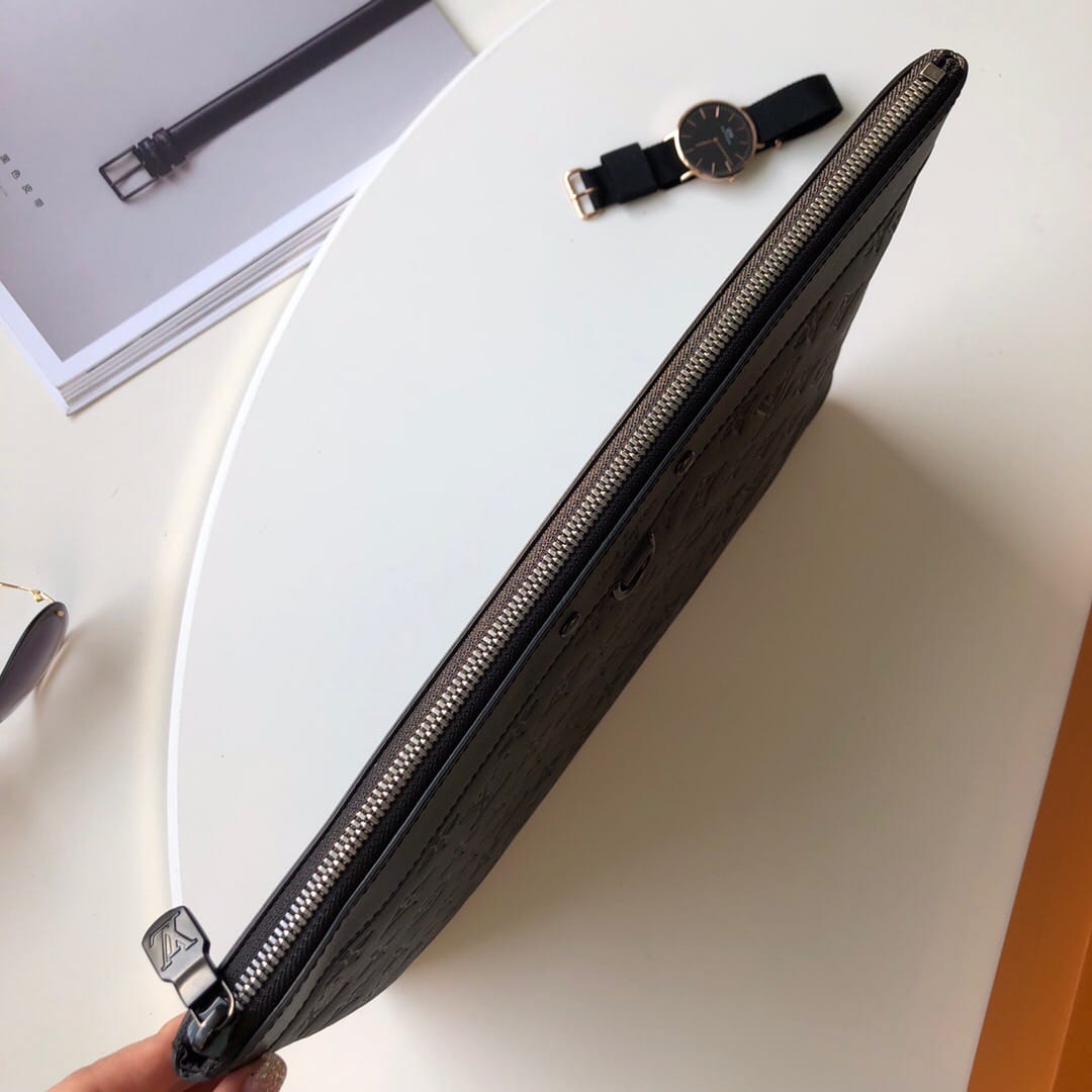 原单~?M62903 黑色 压花 POCHETTE APOLLO 手袋 此款Pochette Apollo手袋由格外柔软的黑色Monogram Shadow小牛皮裁制而成,饰有标志性的路易威登Monogram压纹,是携带文件等私人物品的优雅之选。造型清爽简洁,配有D形环,既可单独携带,亦可装入其他包袋中。34.0 x 25.0 x 2.0 cm (长 x 高 x 宽)。