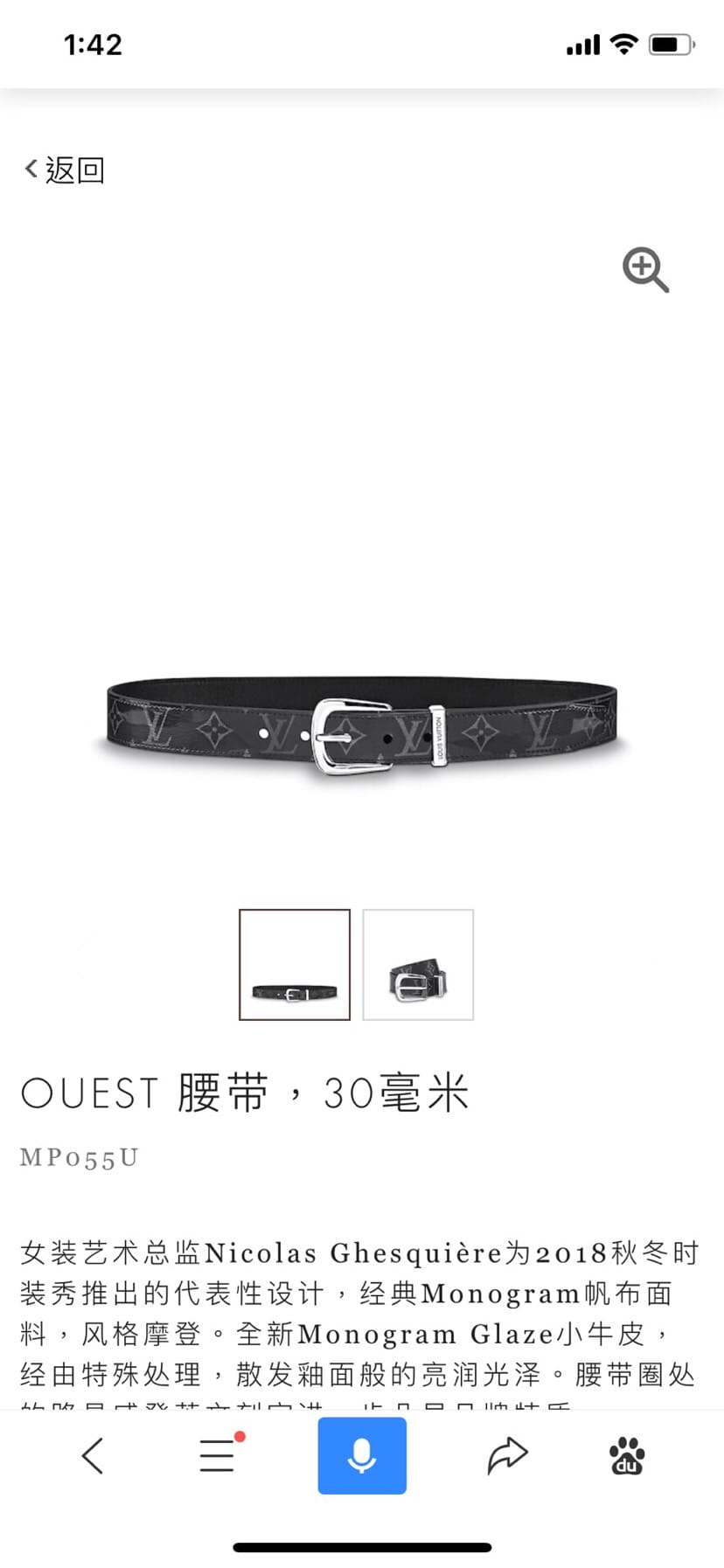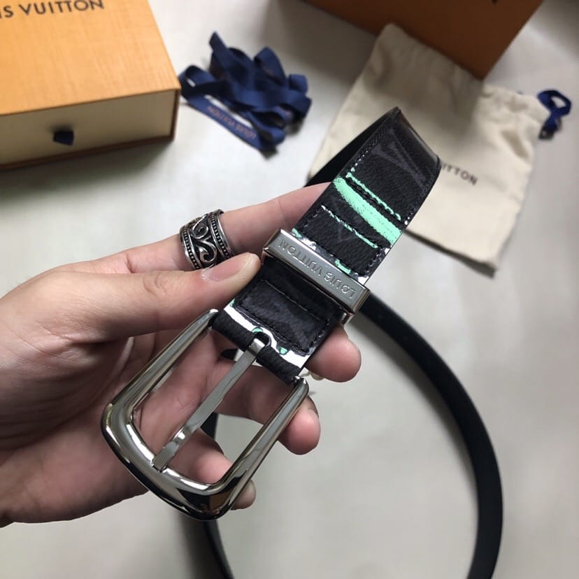 LV女装30mm宽 艺术总监Nicolas Ghesquière为时装秀推出的代表性设计,经典Monogram帆布面料,风格摩登。全新Monogram Glaze小牛皮,经由特殊处理,散发釉面般的亮润光泽。腰带圈处的路易威登英文刻字进一步凸显品牌特质