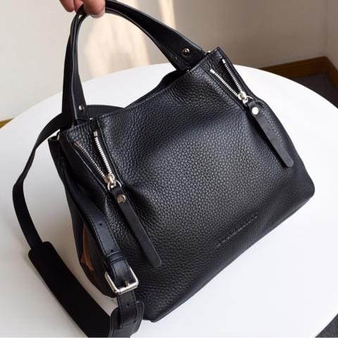 B家女士手提包变形包、原厂出的荔枝纹厚牛皮、侧边配黄麻材质、