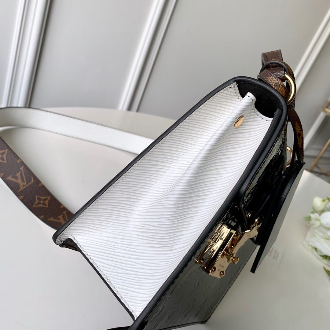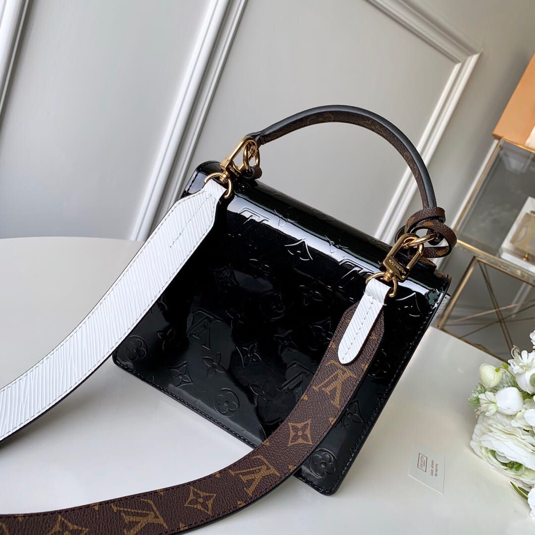 顶级原单~新品~M90375此款Spring Street手袋采用Monogram Vernis漆面牛皮,风格百搭。以原女装艺术总监Marc Jacobs于1999年推出的设计为灵感,运用对比色标志性面料,打造出利落而前卫的格调。顶部手柄与可拆卸肩带带来多种背携选择。17.0 x 16.0 x 8.5 cm (长 x 高 x 宽) 金属沥青色,金属灰 Monogram Vernis压纹漆面牛皮 Monogram涂层帆布与Epi皮革饰边 超细纤维内衬 金色金属饰件 顶部配有Monogram涂层帆布手柄,方便手提或手挽 可拆卸肩带,便于肩背或斜挎 可拆卸Epi皮革姓名吊牌 Monogram帆布钥匙罩 标志性的S形锁扣 内配贴袋