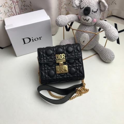 新款出货原版配盒子)新品迪奥爆款,黑色小牛皮翻盖式手提包,搭