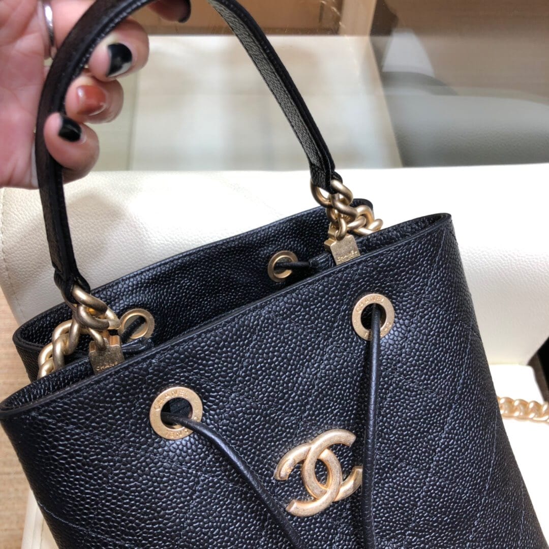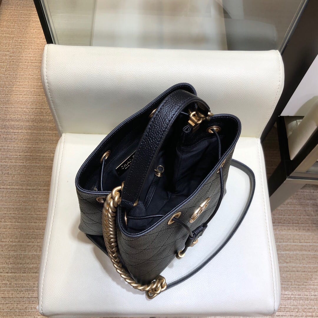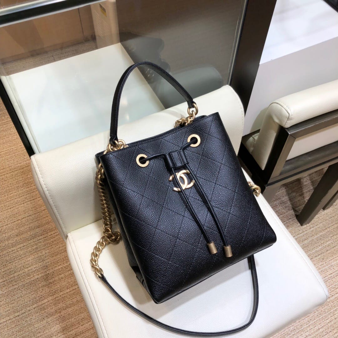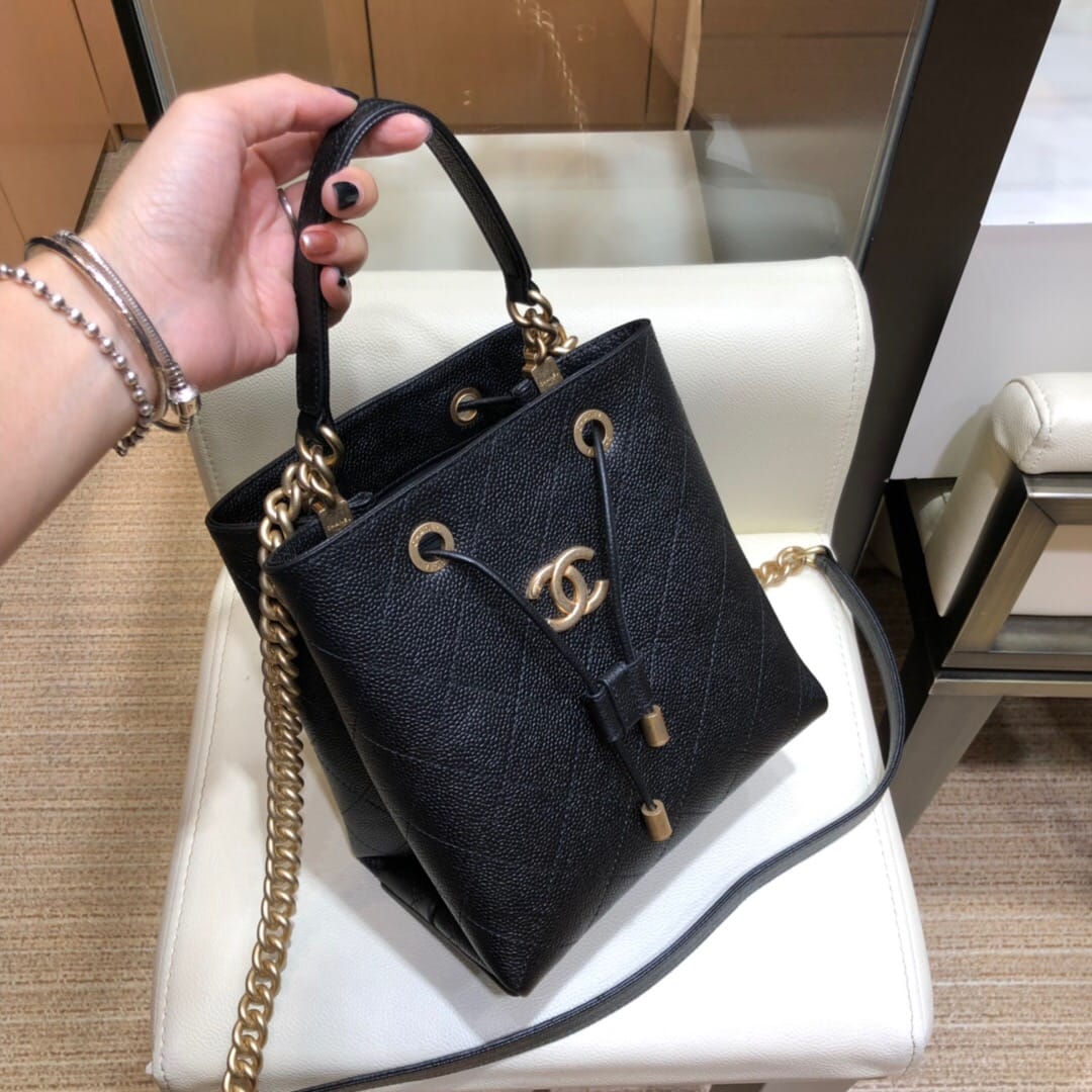 Chanel AS0310 小牛皮抽绳包19春夏新款水桶包 小巧设计鱼子酱颗粒感饱满手拎单肩斜挎多用包 Size:20/12/20