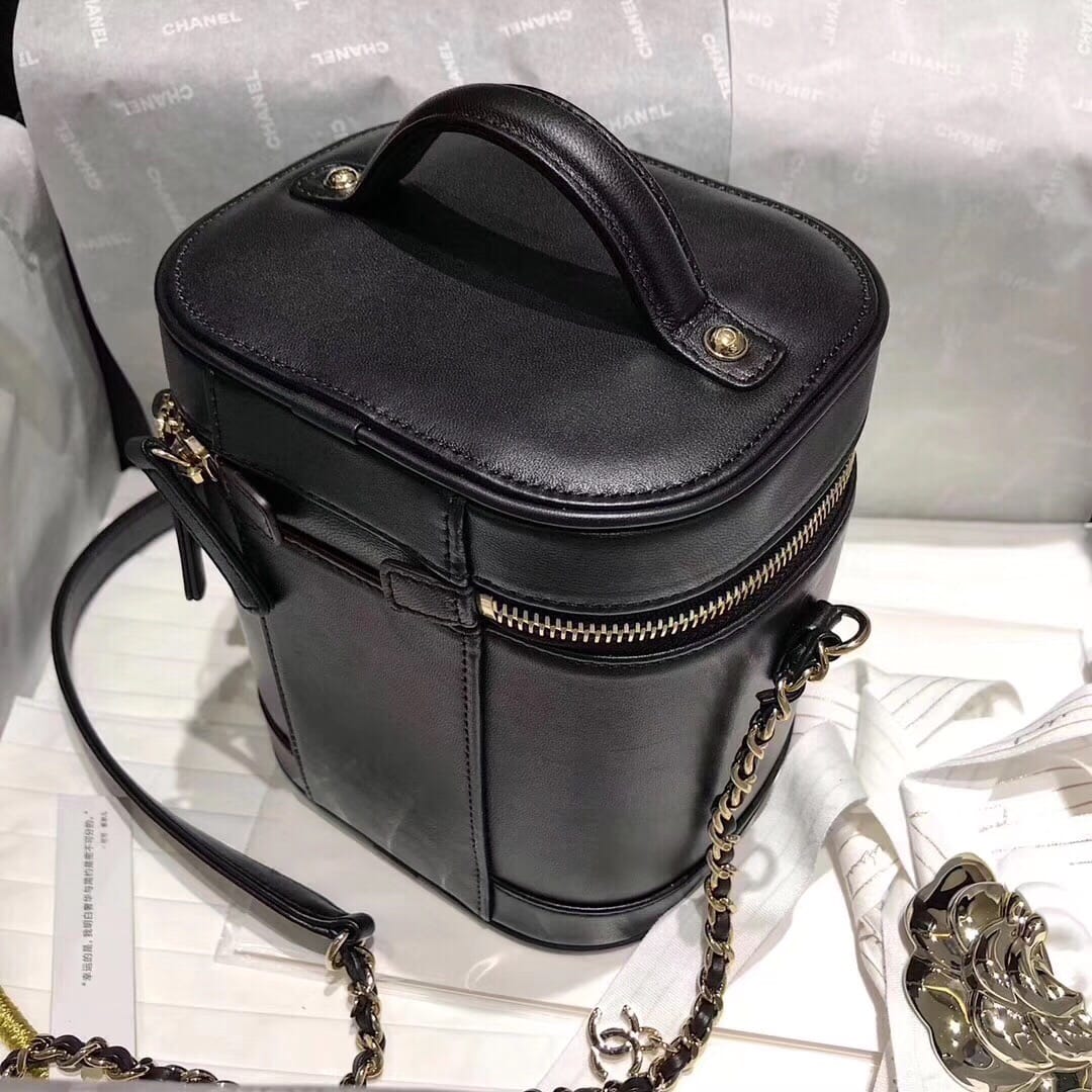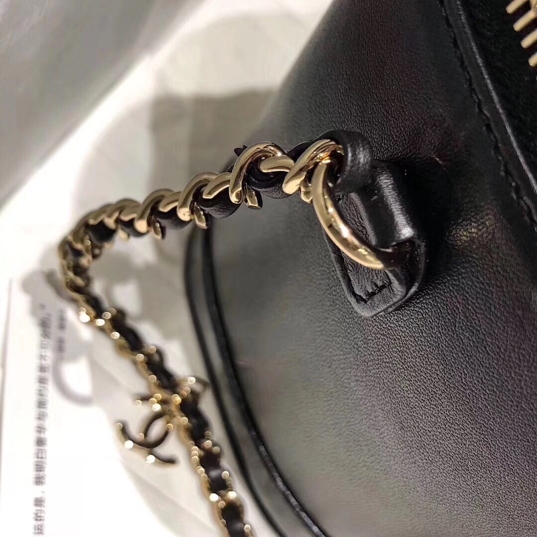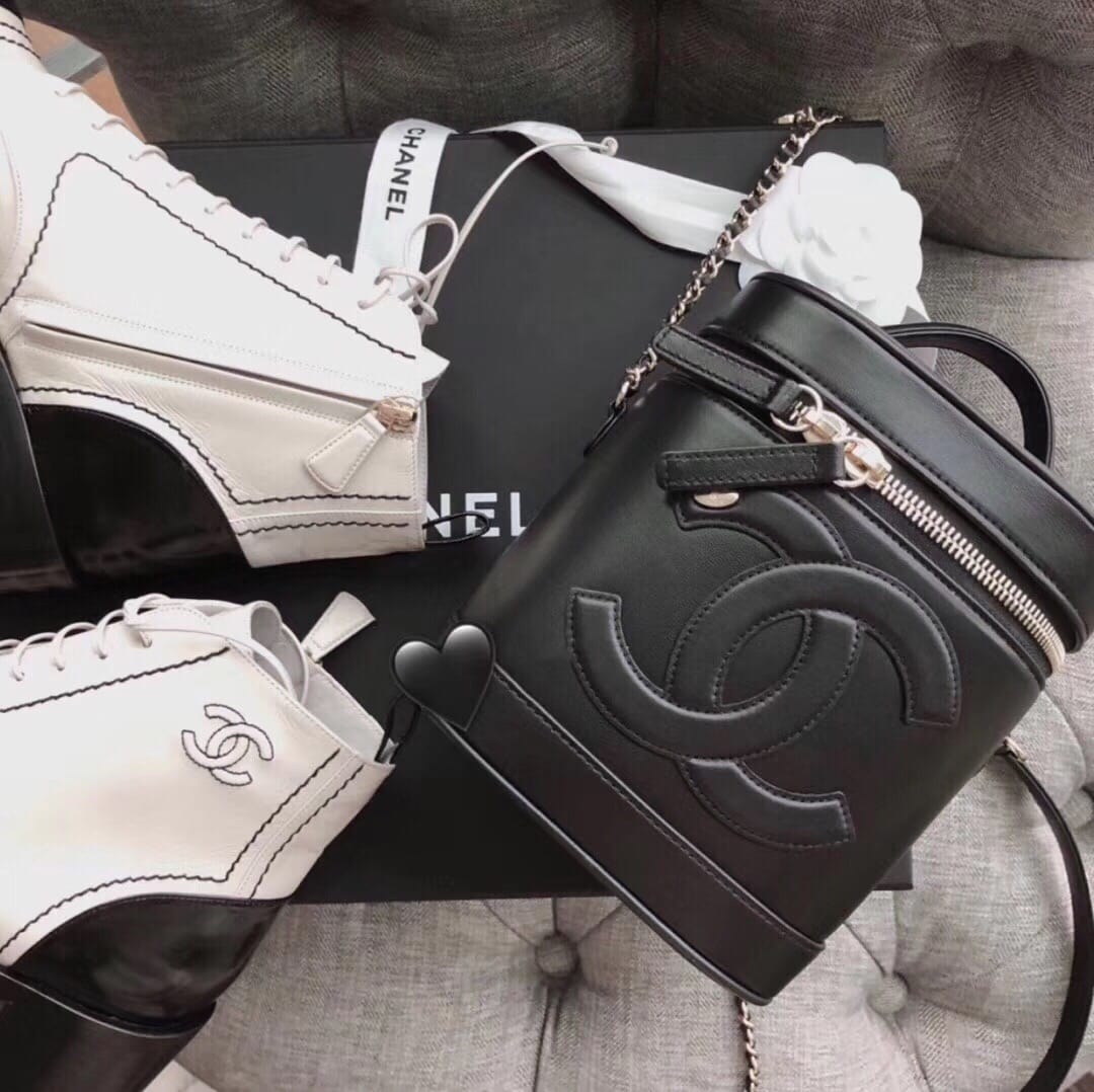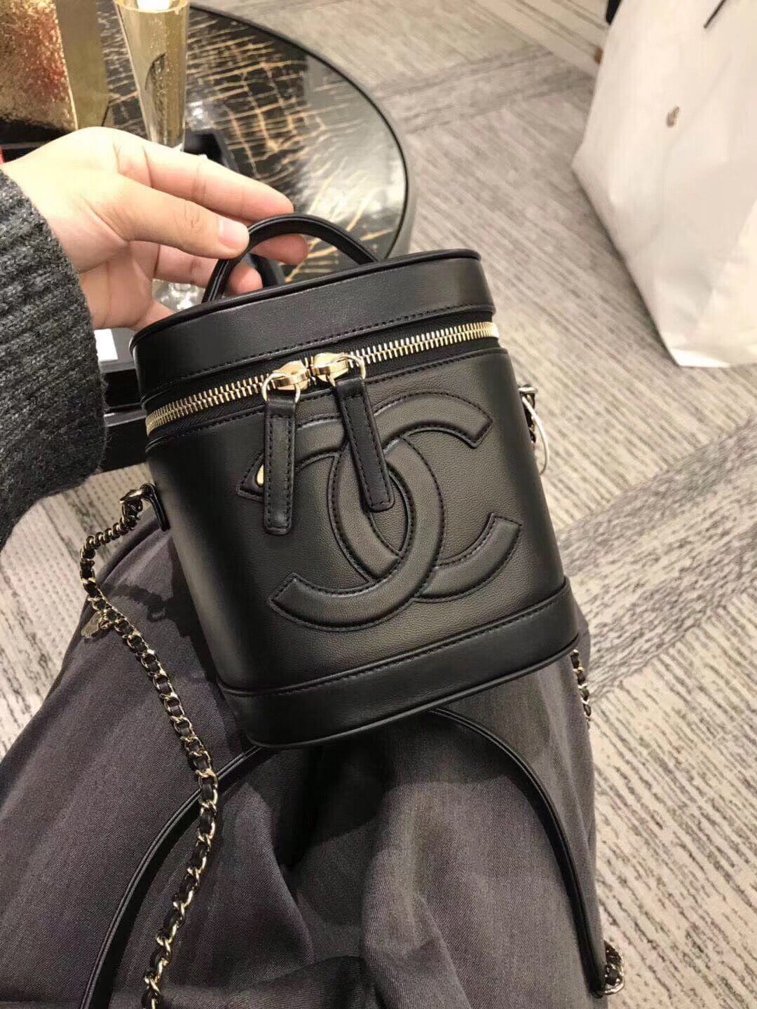 Chanel 新款? 这款的前身是中古球纹化妆包19年来了个大变身 不但自带肩带 而且细节点更多也更出众 包身的小羊皮,质感真的不要太细腻了,logo自带19年标志性五金 让它有了时代的标记 尺寸: 17×15×10cm