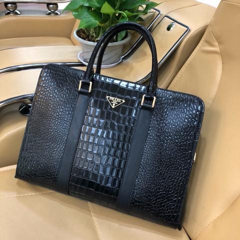P家?? ] 新款男士公文包,进口牛皮双色十字纹、带密码锁