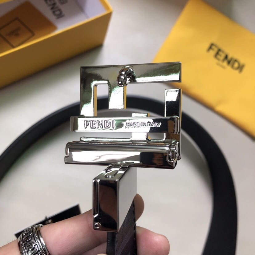 芬迪男士新款?双面头层牛皮,配以最新双F标志造型扣,镀钌饰面