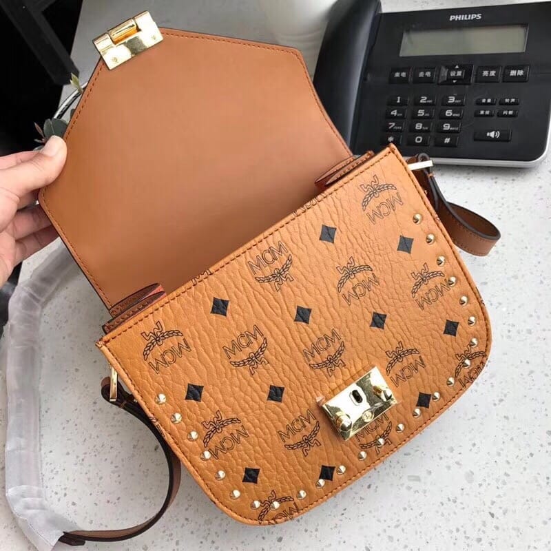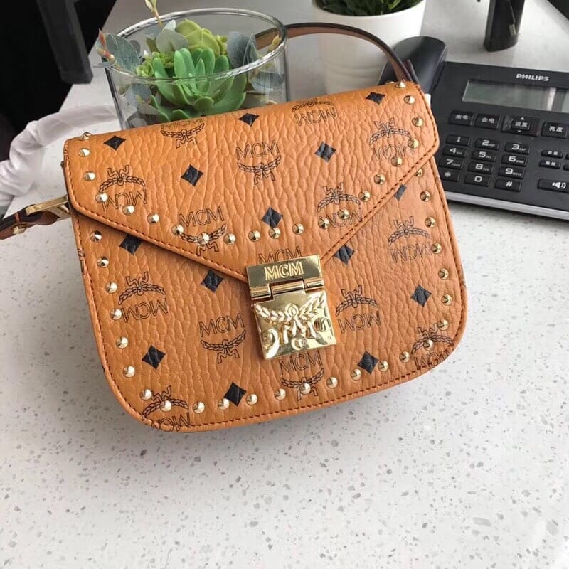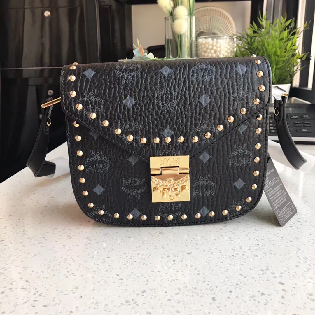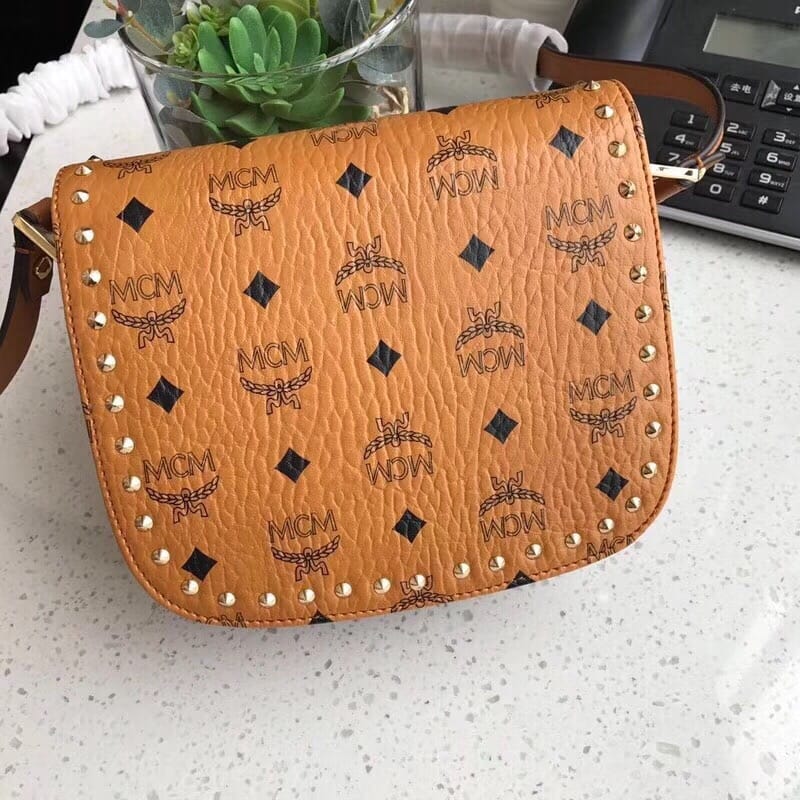 【MCM新款打钉邮差包】GOLD VISETOS单肩包[愉快
