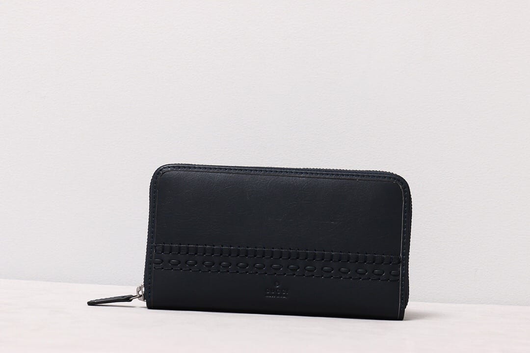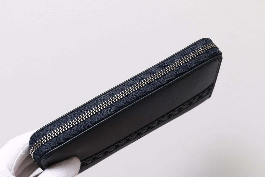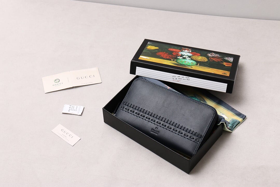 G家最新款黑色皮革全拉链钱包?饰以双G条纹印花,金属质感金色
