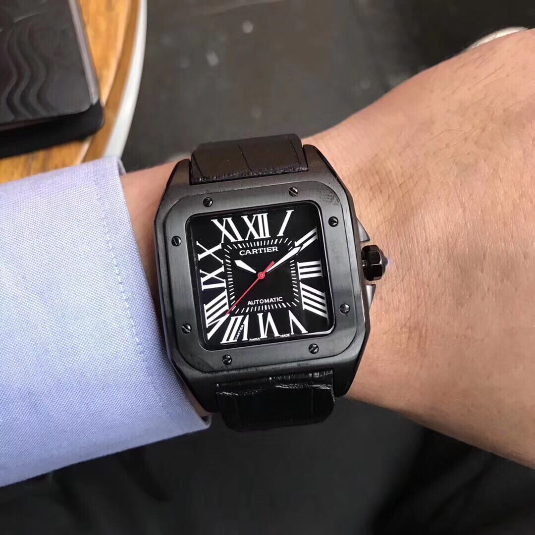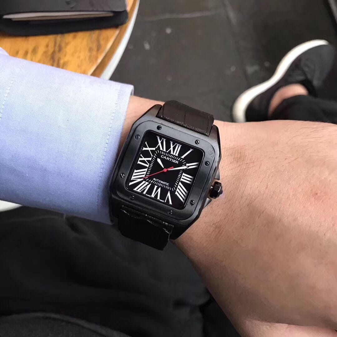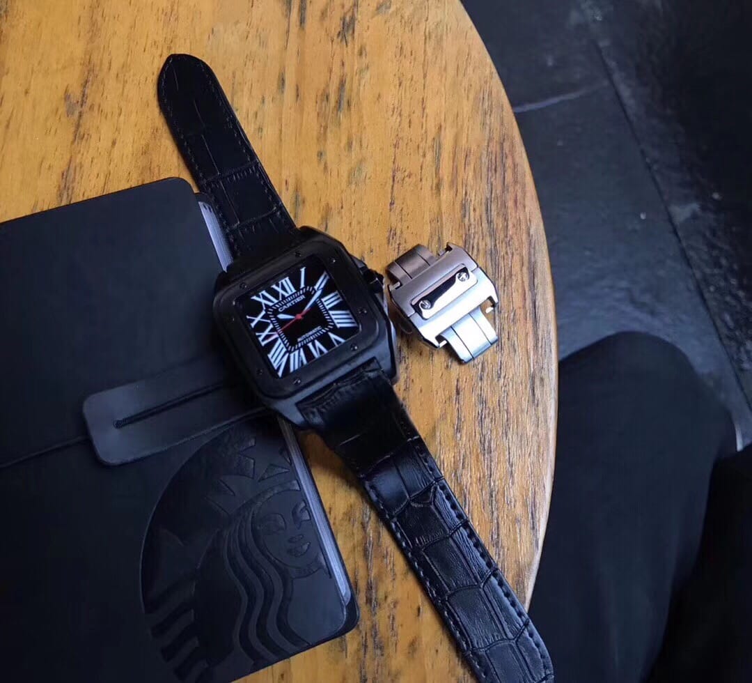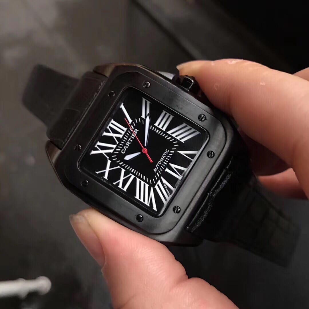 今日推荐??卡地亚-Santos 100系列??尺寸:51.5x41.3mm ?只有同时具有王者气质和劲酷外形的腕表才能衬托他的高傲与不凡 内置全自动机械机芯 进口蓝光玻璃 意大利牛皮表带?顶级出品精品不断?