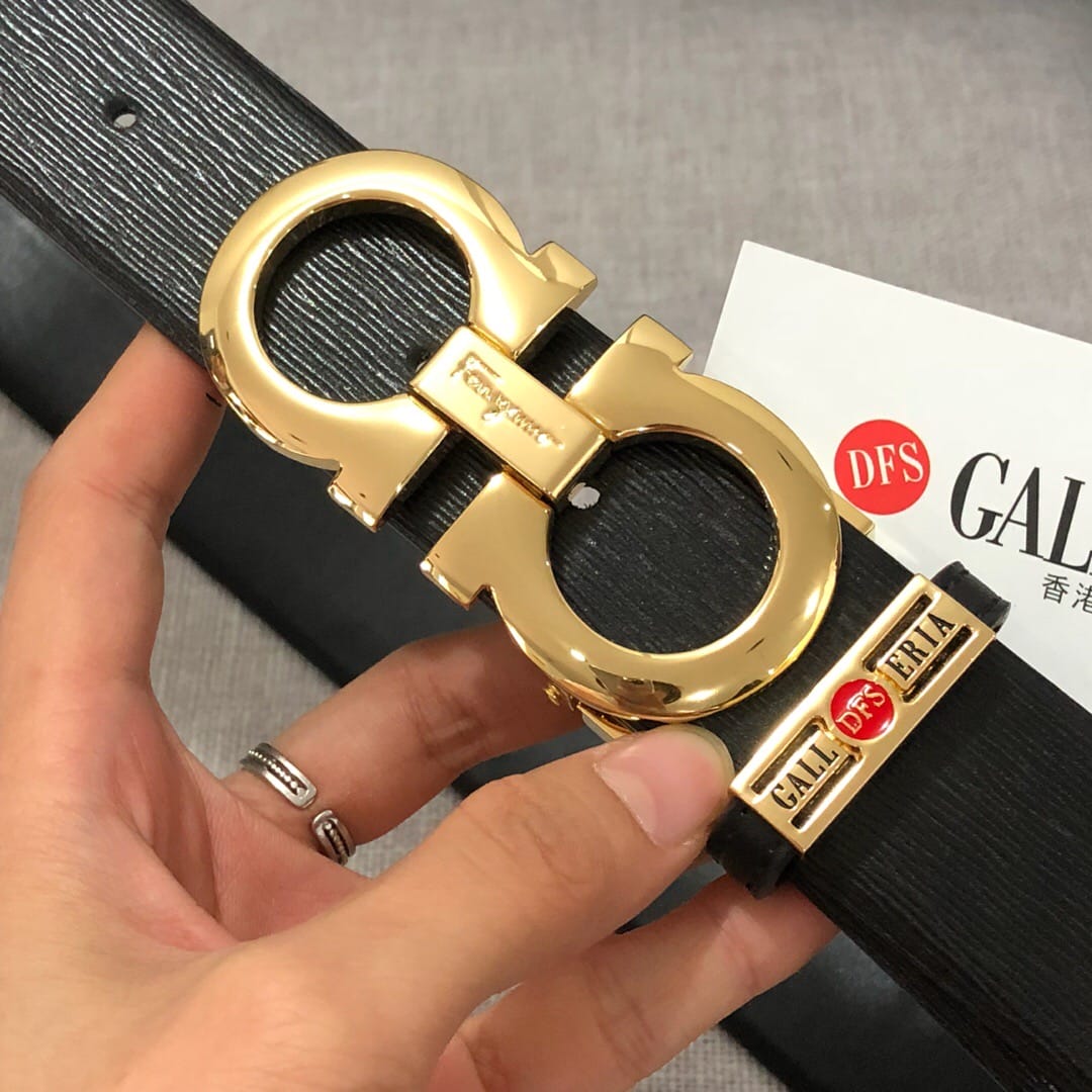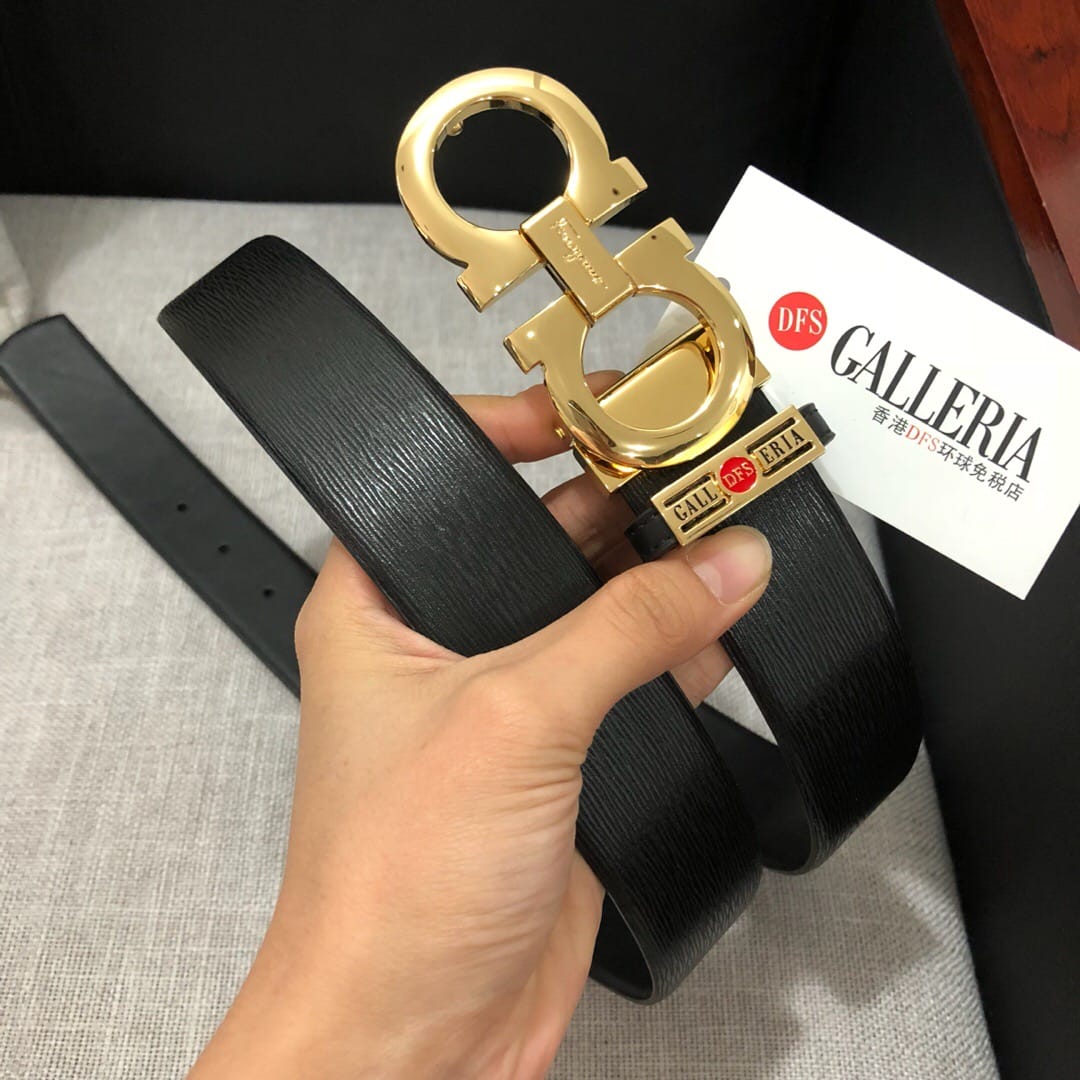 配置专柜包装 Ferragamo菲拉格慕钢扣 专柜同款 新品男士腰带 ?定制牛皮?流水纹 尊贵奢华 送礼佳品!宽度35mm