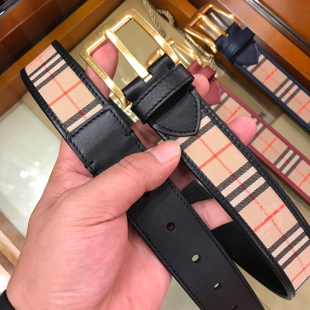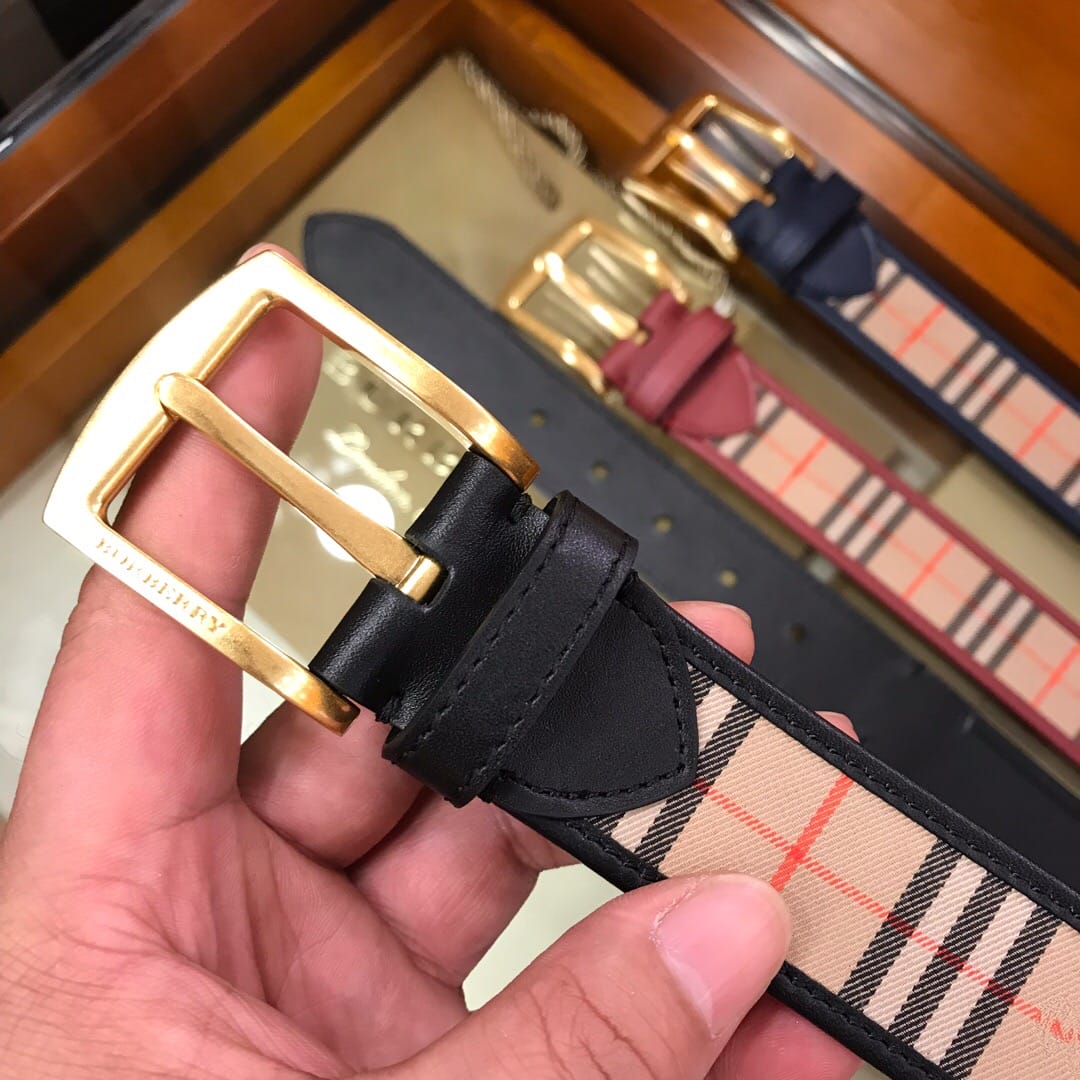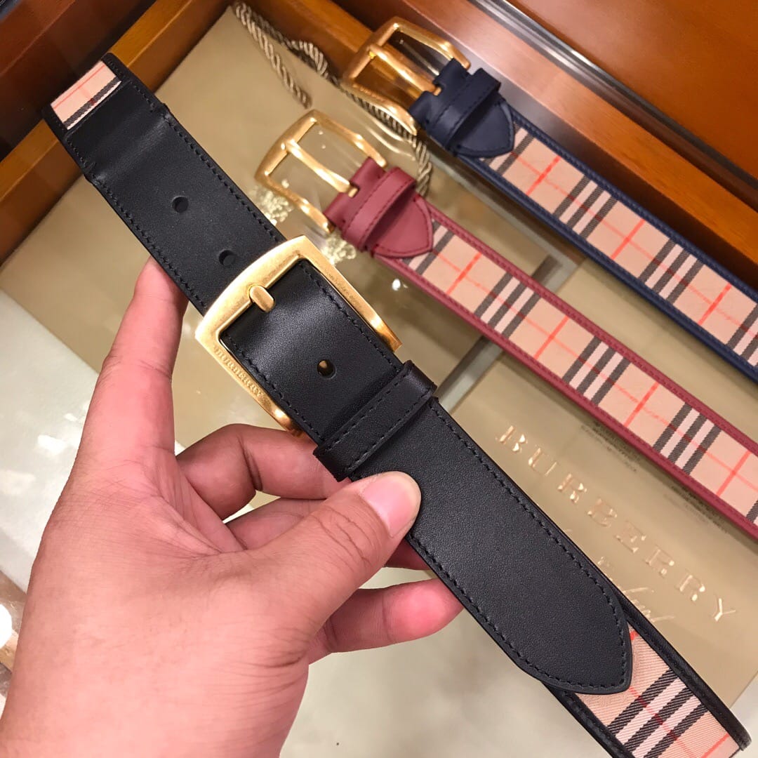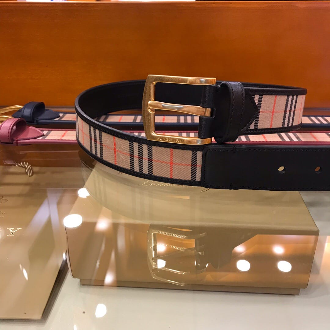 {巴宝莉}男士皮带!格纹腰带,采用皮革衬里,产自意大利工坊。