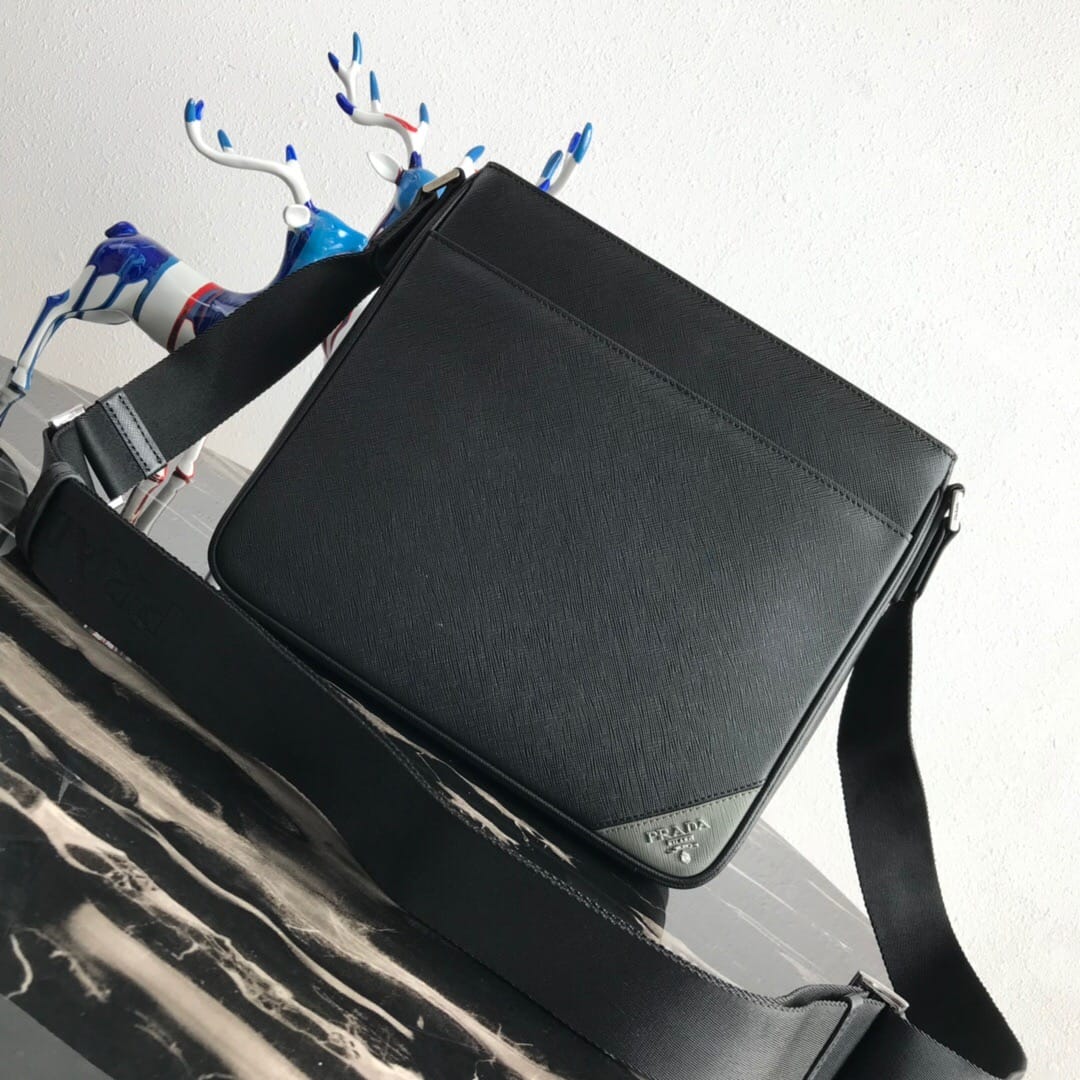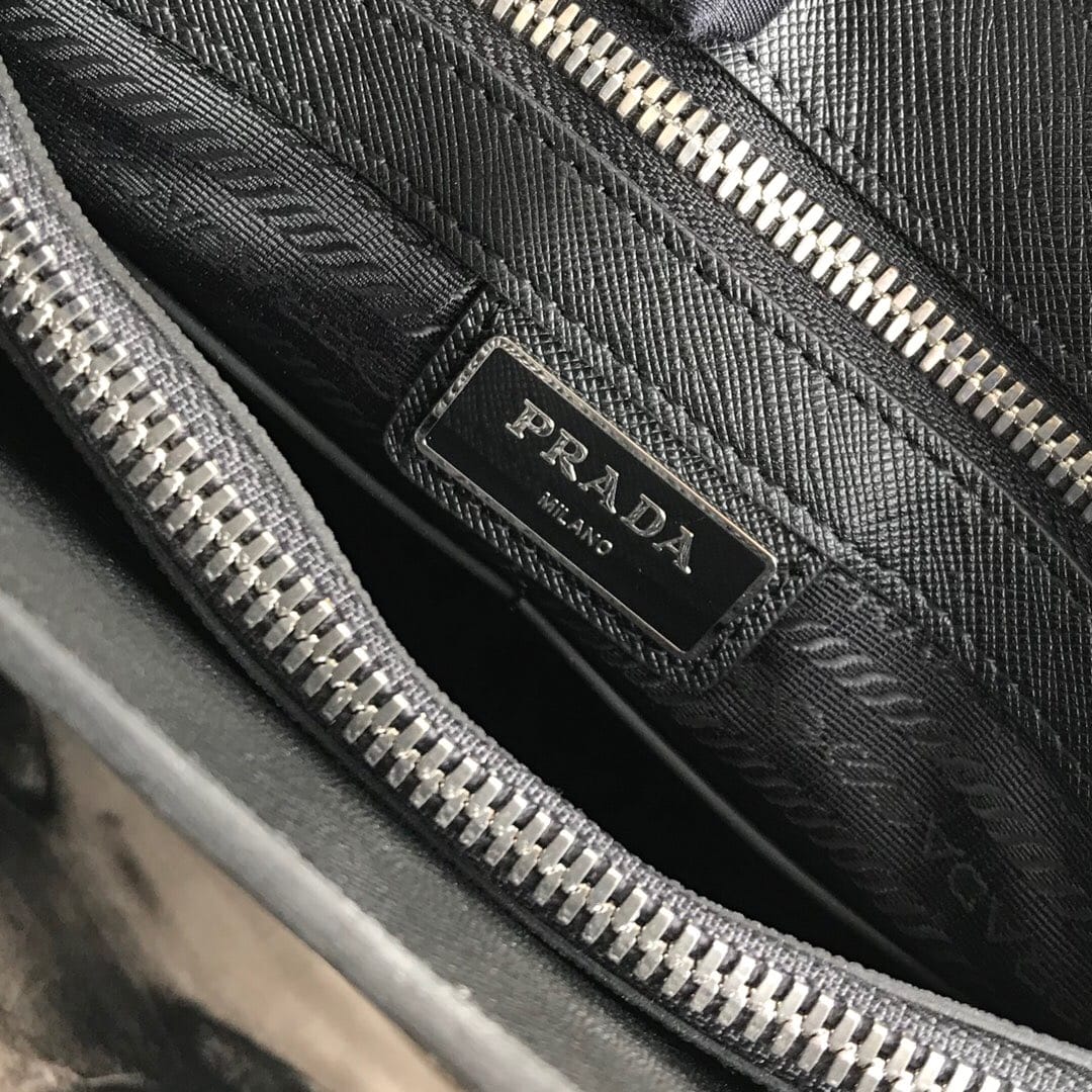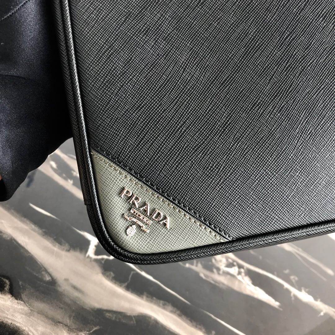 海外原单 P家专柜新款?2VH086角唛克/灰?意大利进口十字纹牛皮配搭白钢五金??1??6??5??代工码,市场最高版本,潮流时尚款???全套包装 尺寸28×24.5×6cm