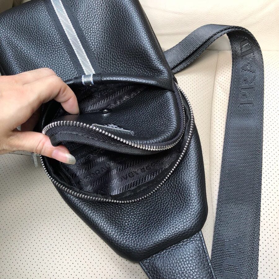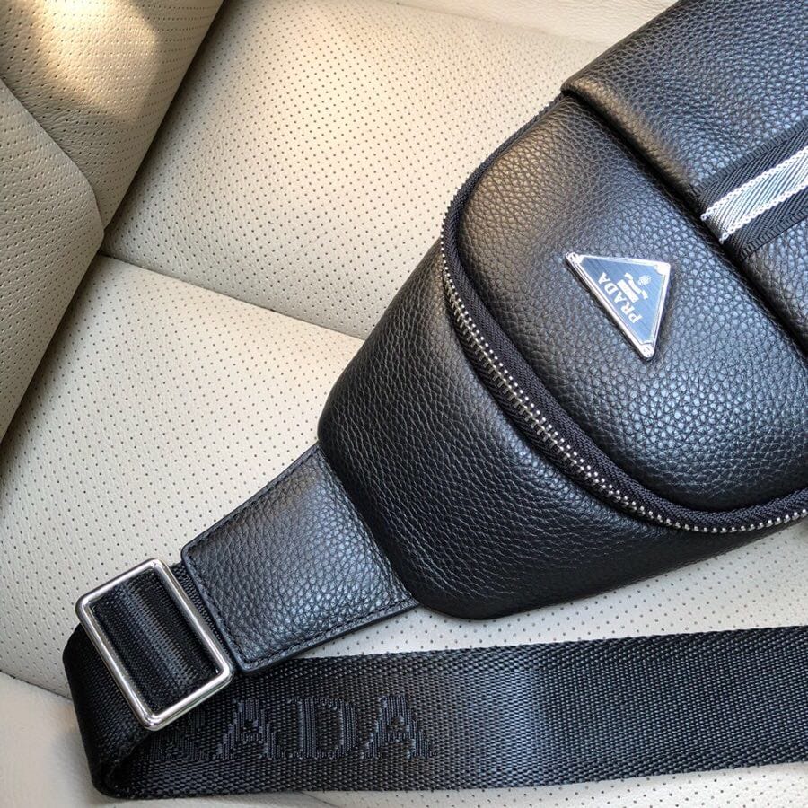 普拉达2018夏季必备胸包 ●头层牛皮 ●黑色●长18cm