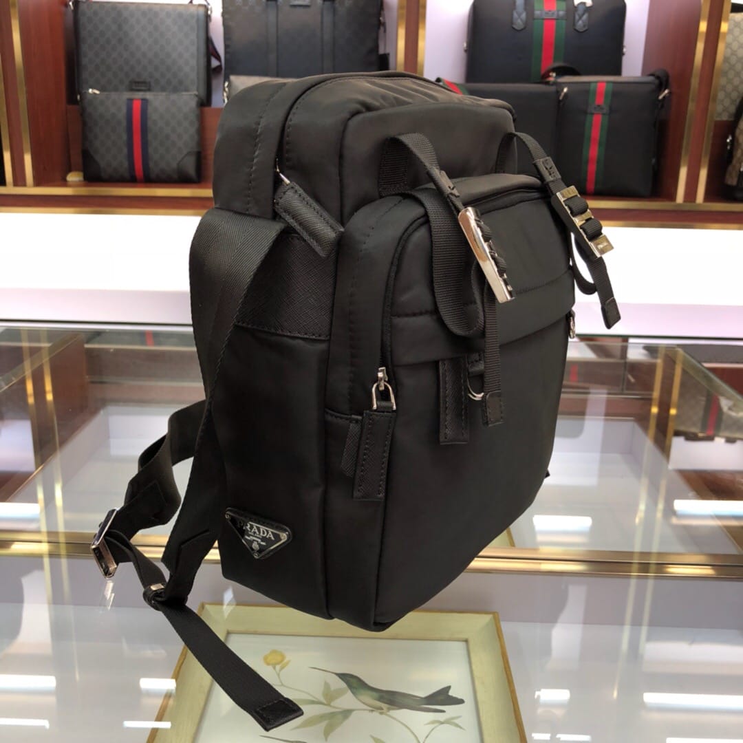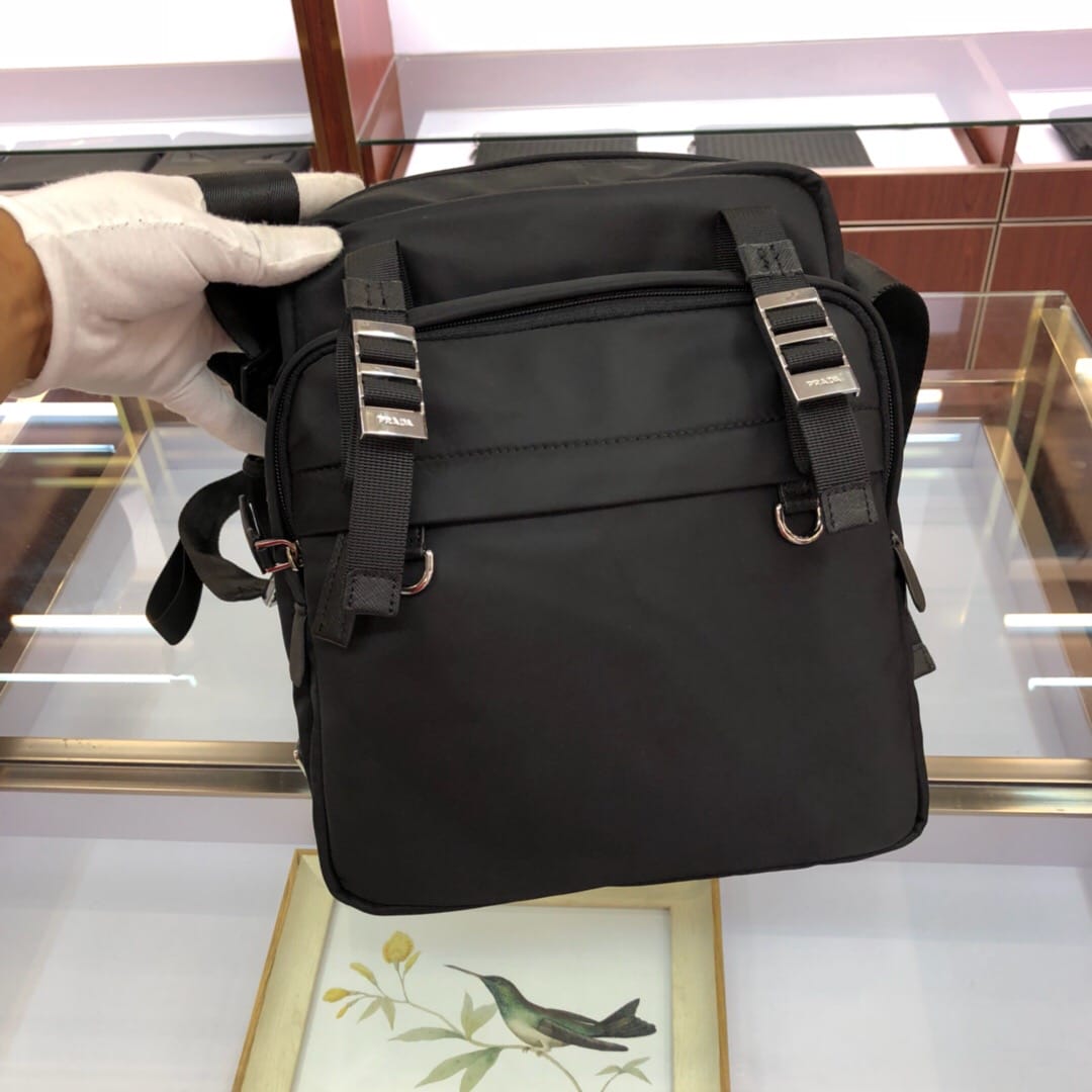 原官网6704普拉达手拿包 十字纹牛皮配尼龙防水布料,材质