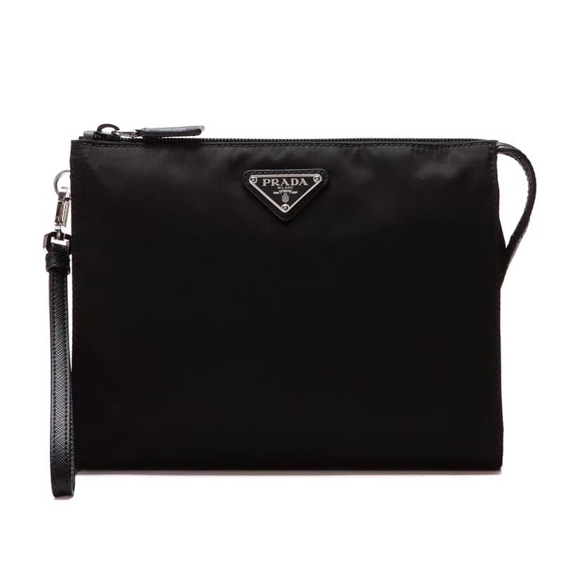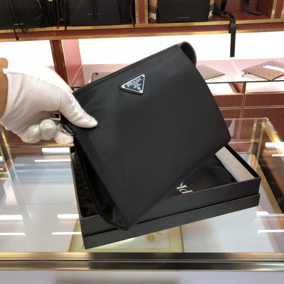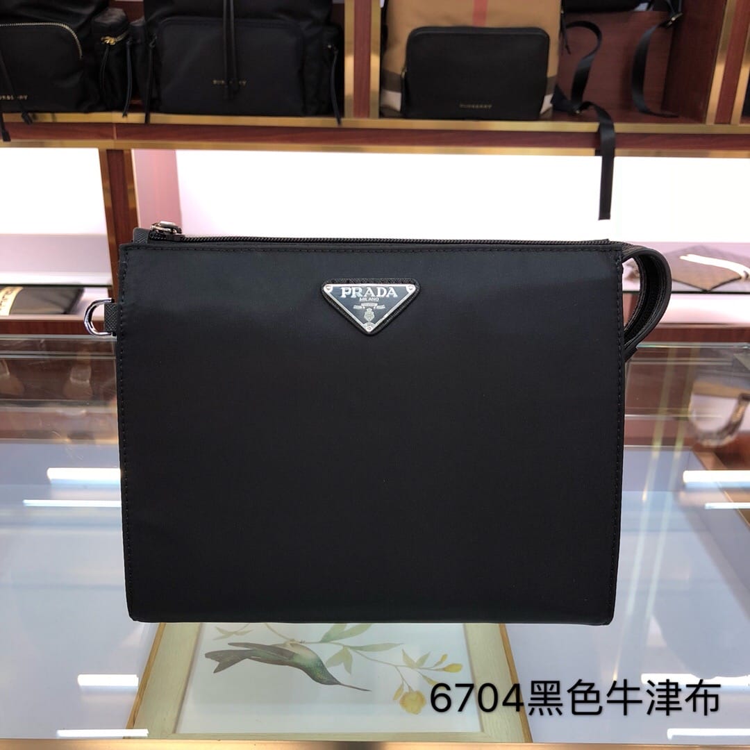 原官网6704普拉达手拿包 十字纹牛皮配尼龙防水布料,材质