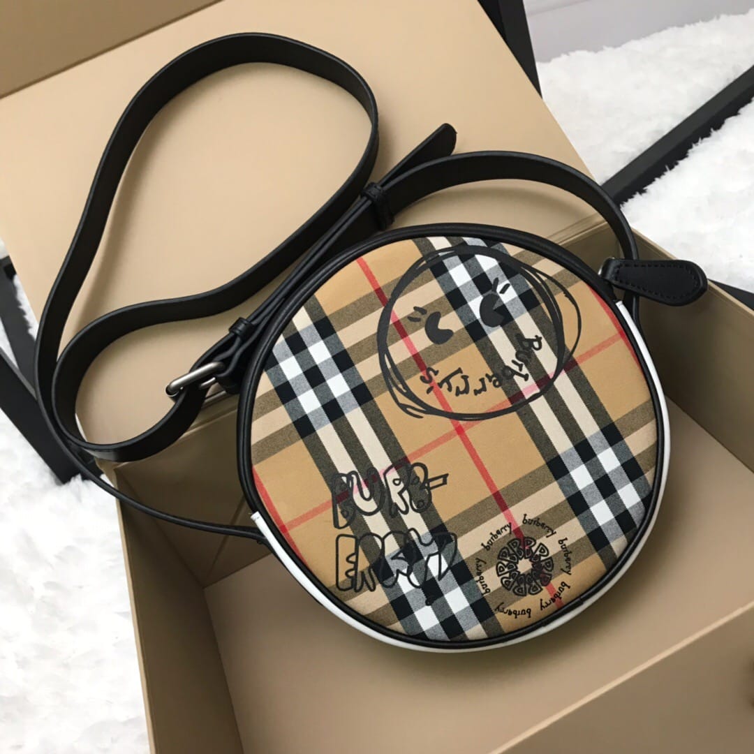 【B家顶级原单】涂鸦圆饼迷你包,19年最新款,经典格纹 创意