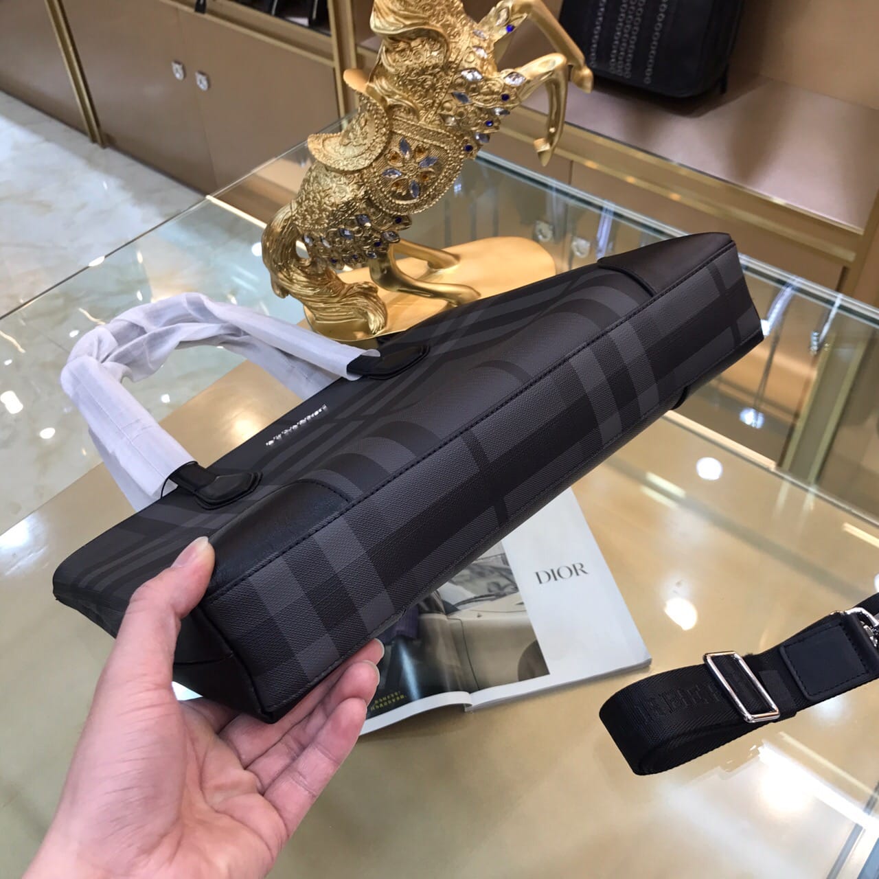 Burberry巴宝莉 ?标志性「The Barrow 柏洛包」,臻选 London 格纹皮革材质,打造纤巧精致的版型。挺括的顶部提柄与可拆式网纹肩背带,适合通勤时携带!??型号:8766-1 尺寸:37-7-30cm 颜色:蓝色、灰色
