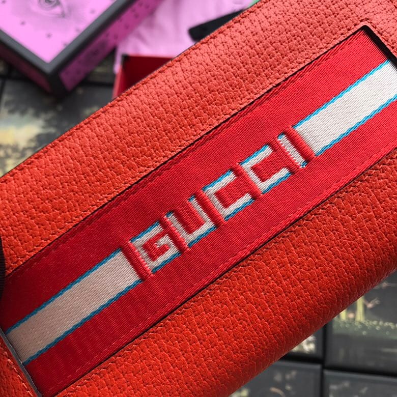 ?欧洲正品原单?美到淋漓尽致?采用意大利进口粒纹牛皮精致而成?配以复古田径运动服侧身装饰的带条标识?男士首先,原版皮质,做工精湛,实物拍摄,型号408831橙皮织带。尺寸:宽19x高10x深2厘米。