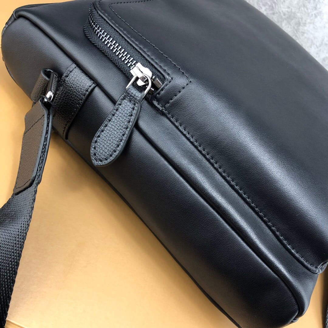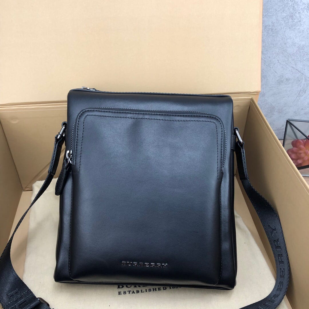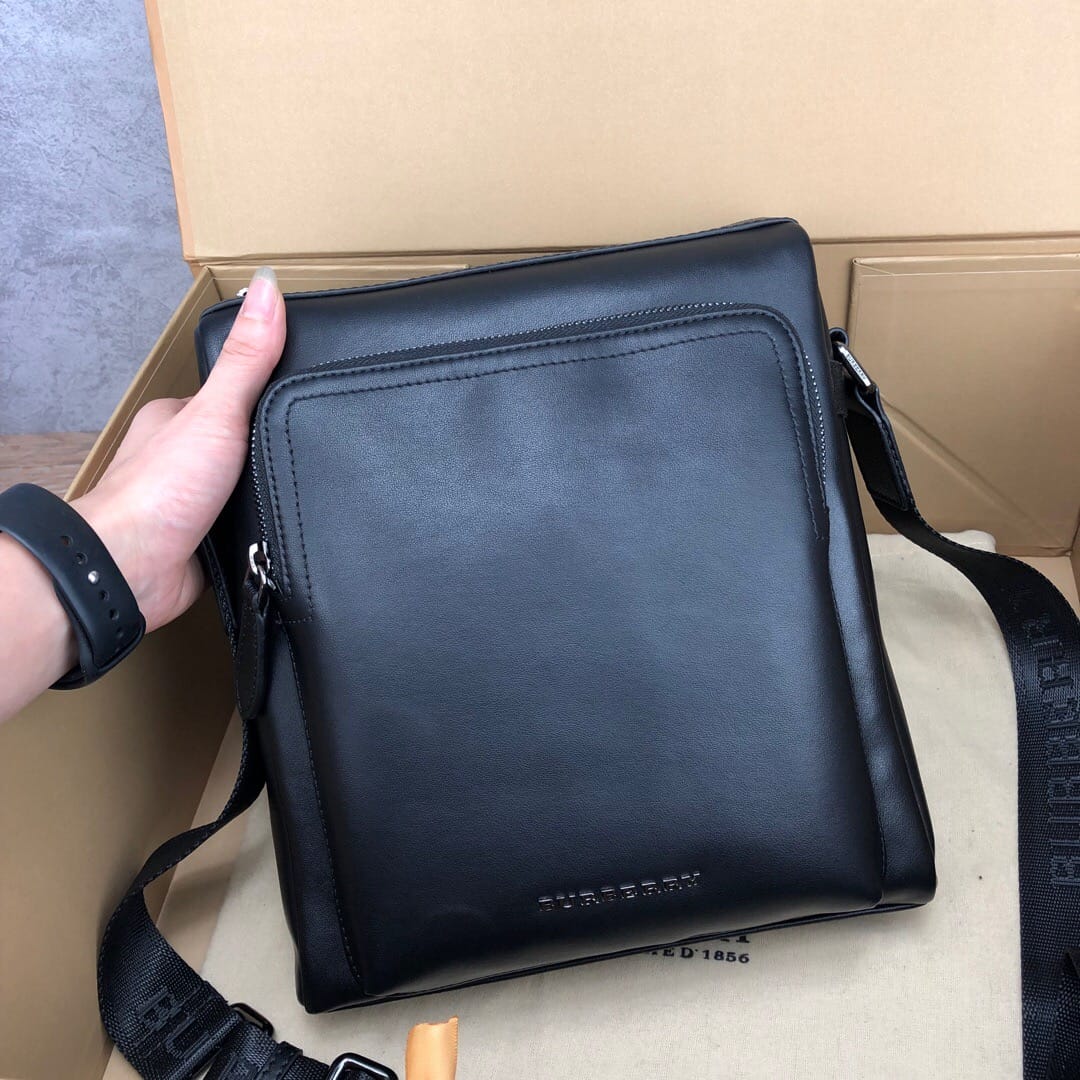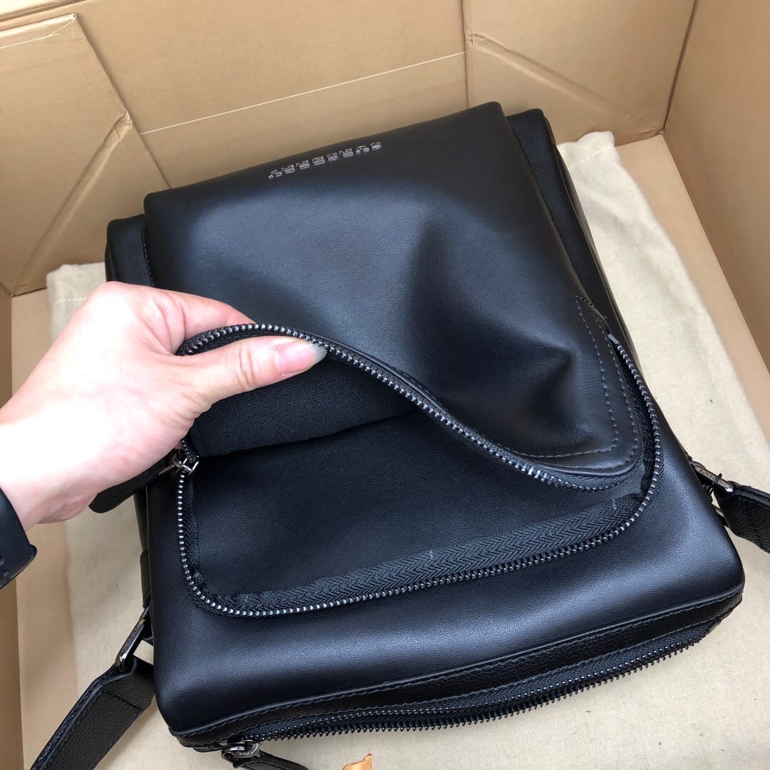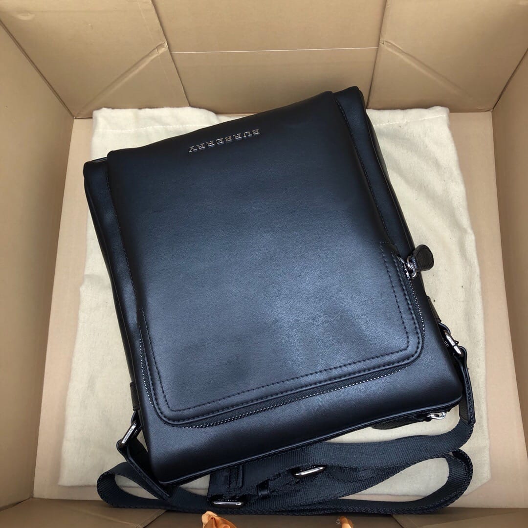 巴宝莉B家日单蓝标顶级意大利进口小牛皮 必入款男士单肩包 精