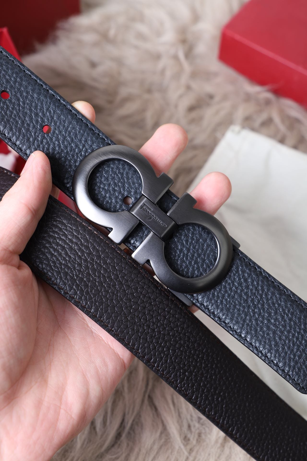 {菲拉格慕}男士皮带!双面头层平纹牛皮带身(双面用)、精品五