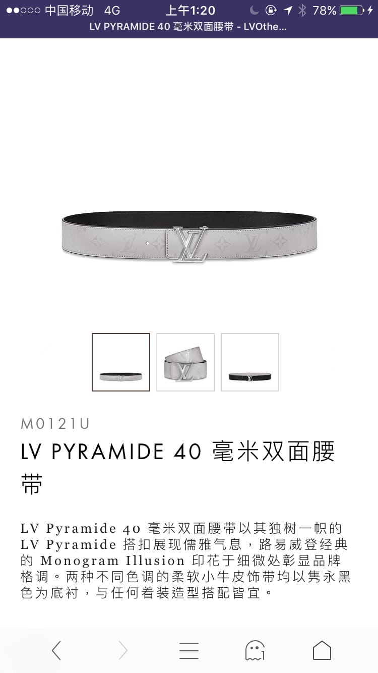 原单水货 LV Pyramide 40 毫米双面腰带以其独树