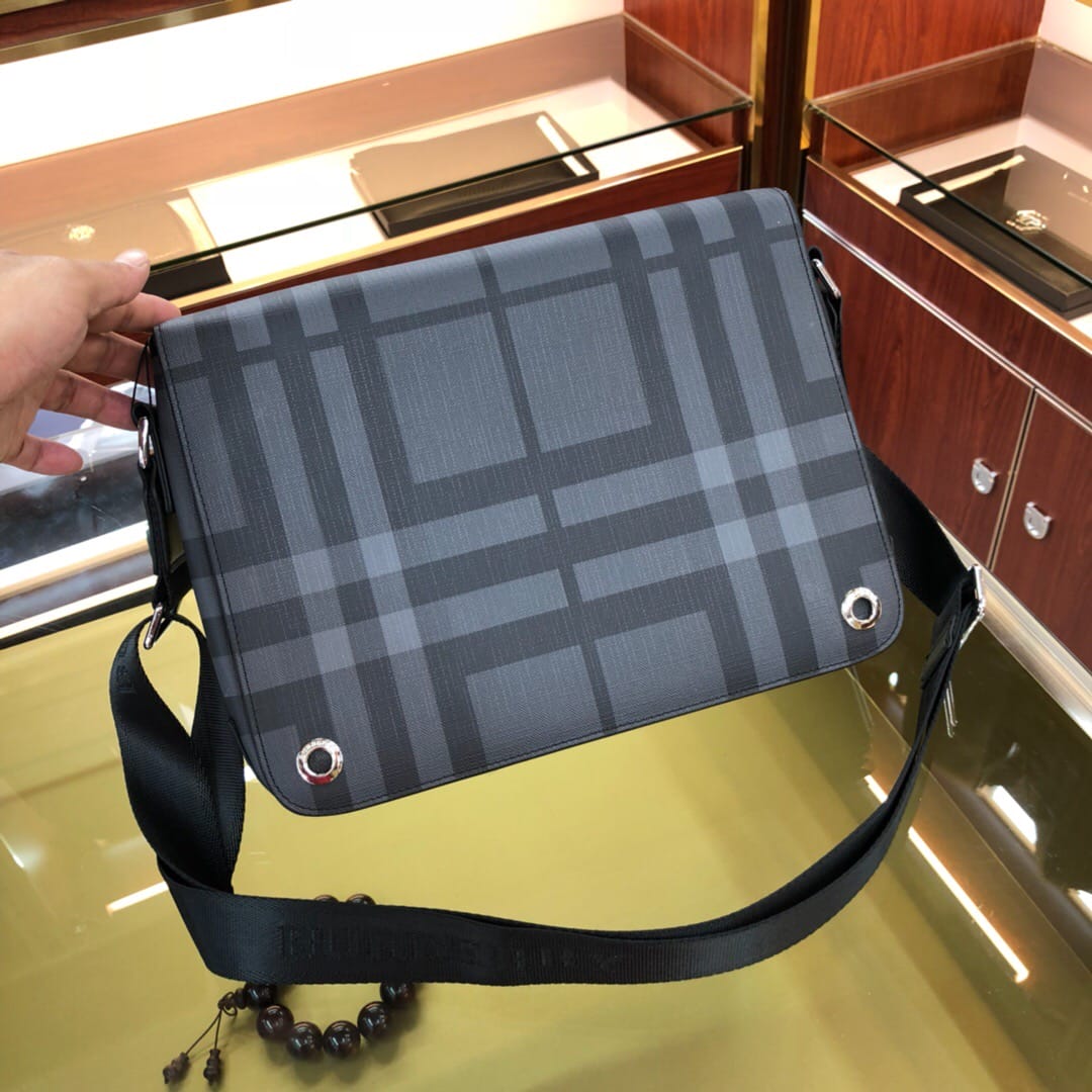 原单官网88337-2灰色格子斜跨包立挺考究的皮革公文包,内