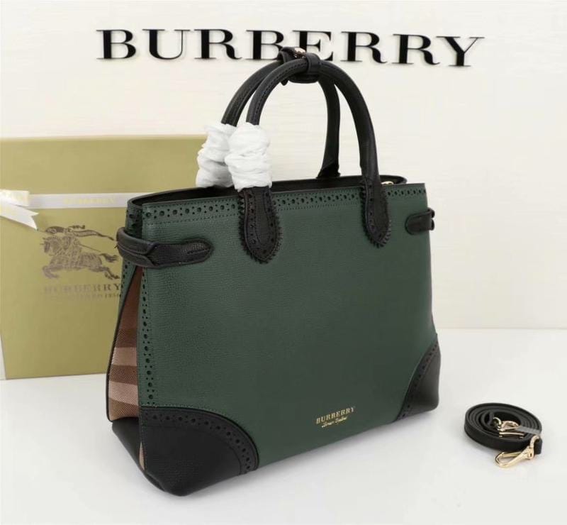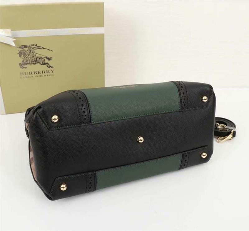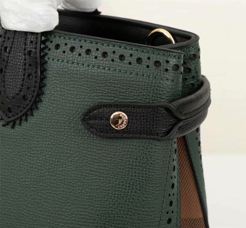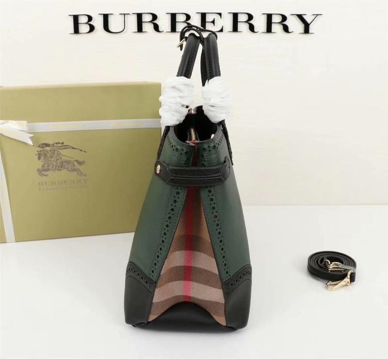 B家最新款原版牛皮搭配布洛克镂花装饰、经典HOuse格纹棉质
