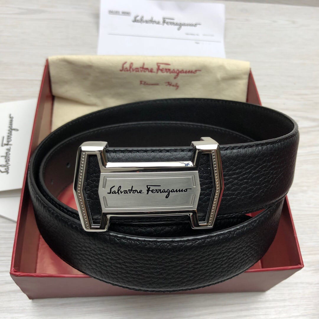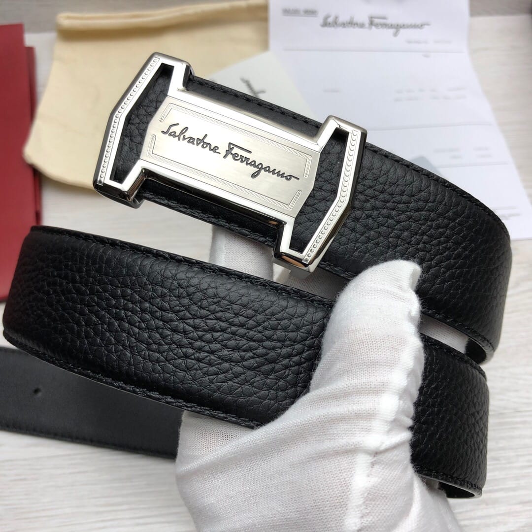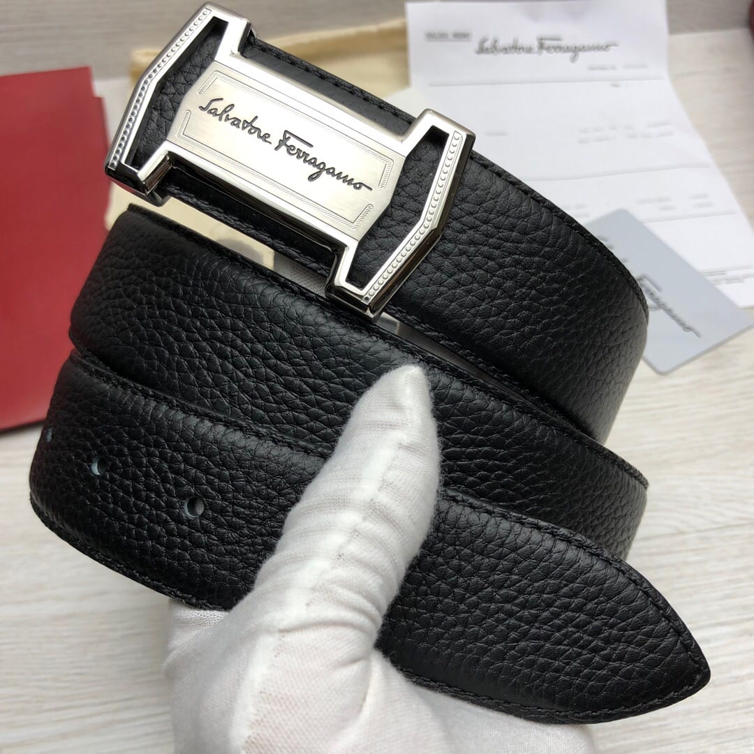 菲拉格慕}男士皮带!原单头层牛皮荔枝纹面.内衬头层小牛皮底,