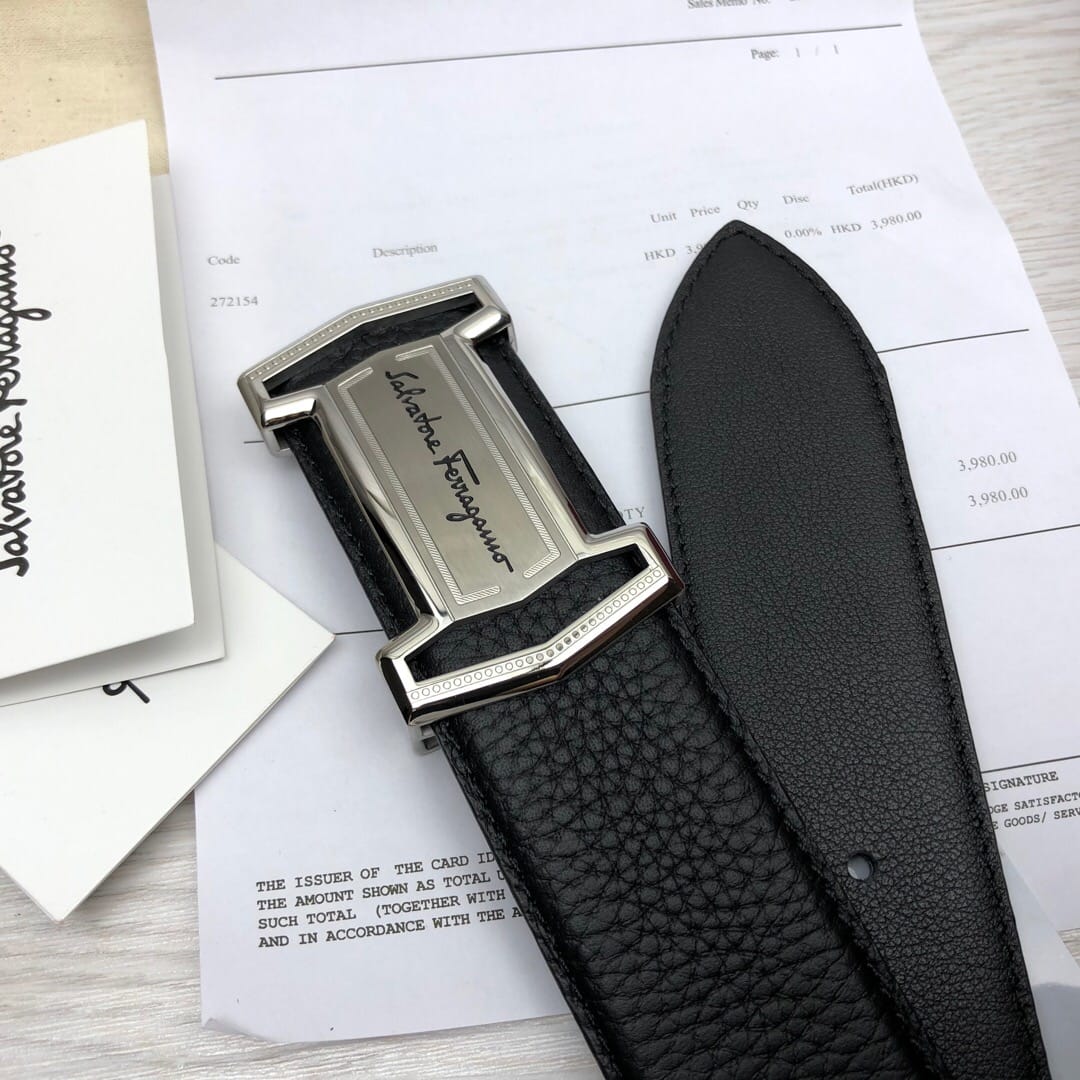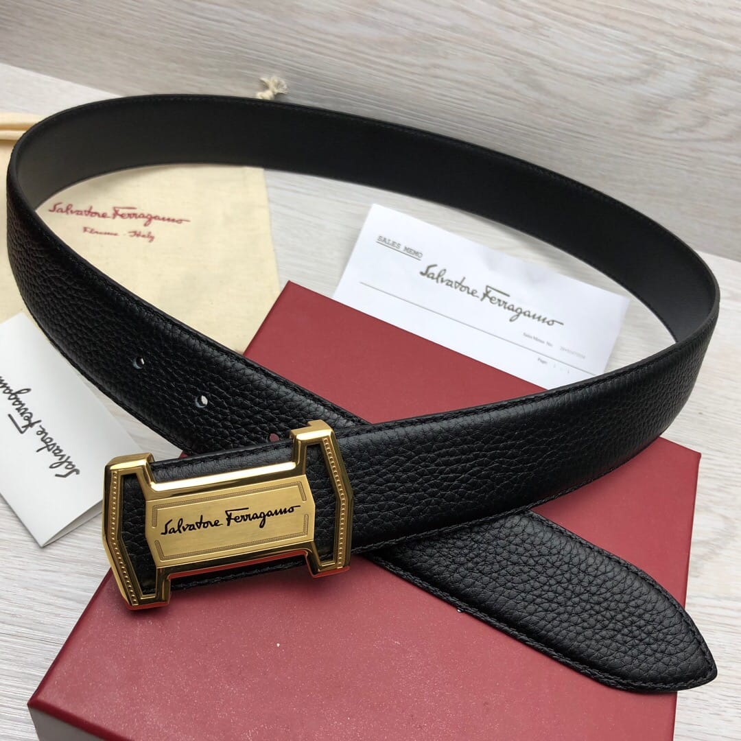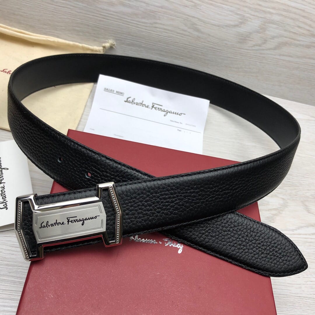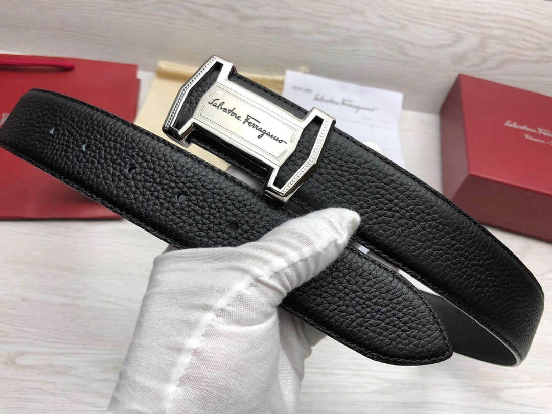 菲拉格慕}男士皮带!原单头层牛皮荔枝纹面.内衬头层小牛皮底,