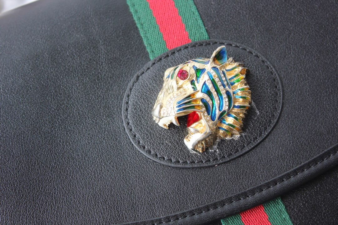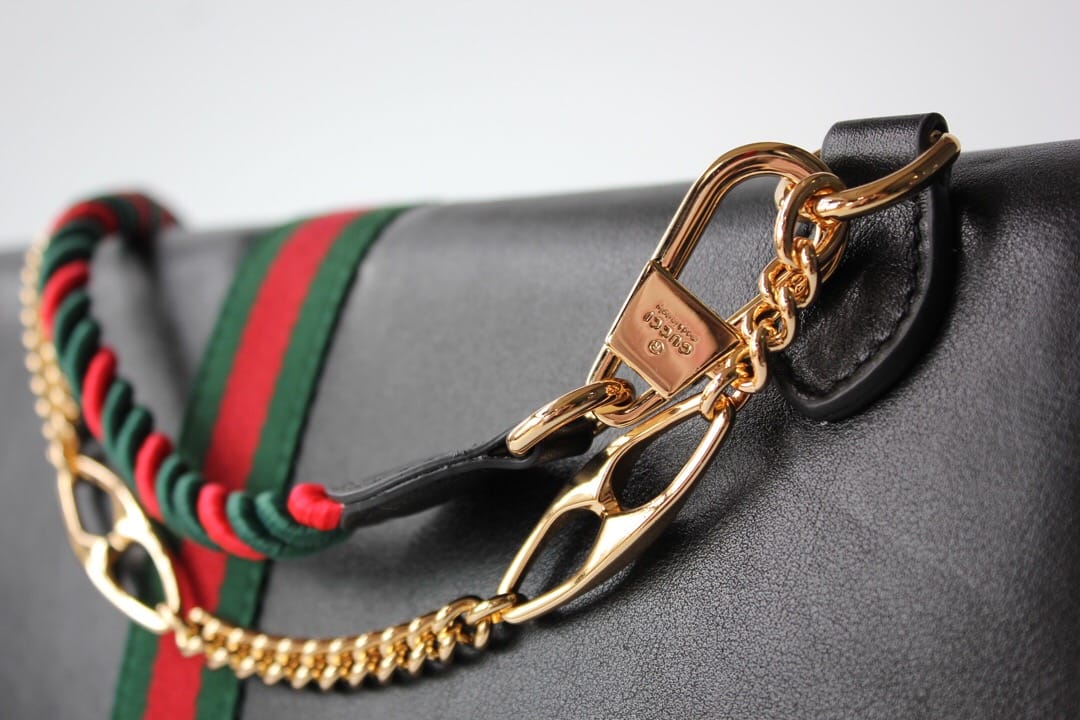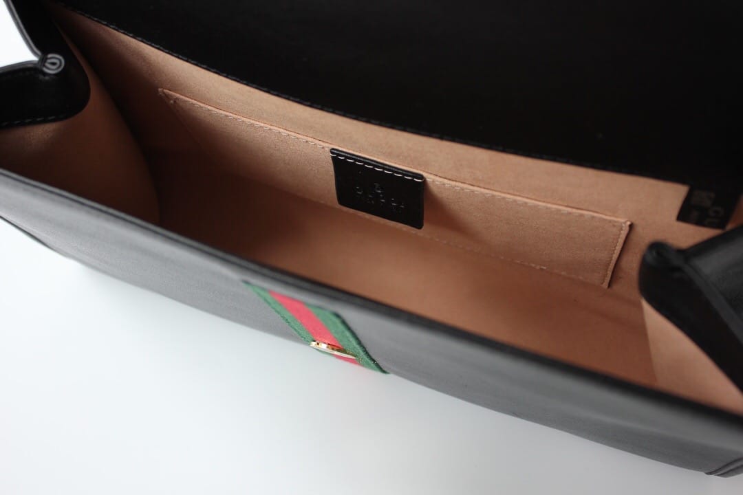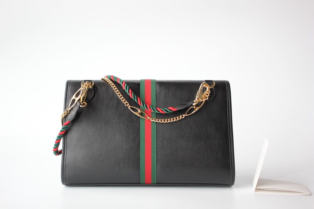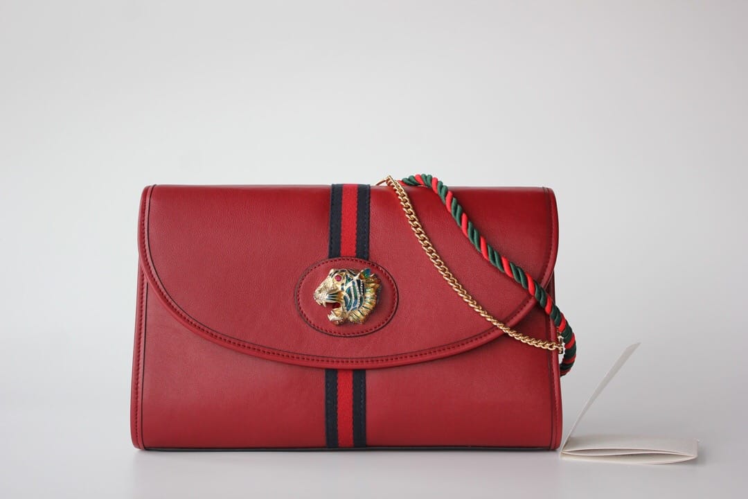 型号??564697大号 等级??真正最高原单品质 尺寸?32.5x21x6cm 简介??出货啦??作为2019春夏Rajah系列的新成员,中号皮革肩背包上点缀本系列标志性的彩色珐琅和水晶虎头造型,创意灵感源自珠宝时尚设计师Hattie Carnegie于1940年代推出的典藏之作。双带式设计,配有一条短链带和一条品牌标志性红绿织带配色长肩带