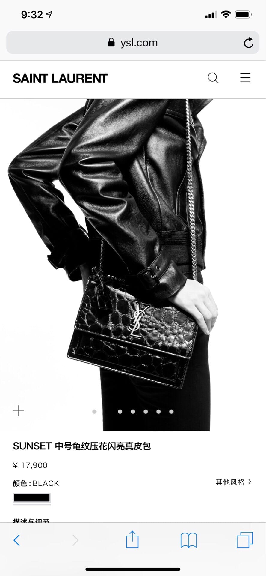 Y家?? 专柜同步新款龟纹压花442906#【黑色】意大利进