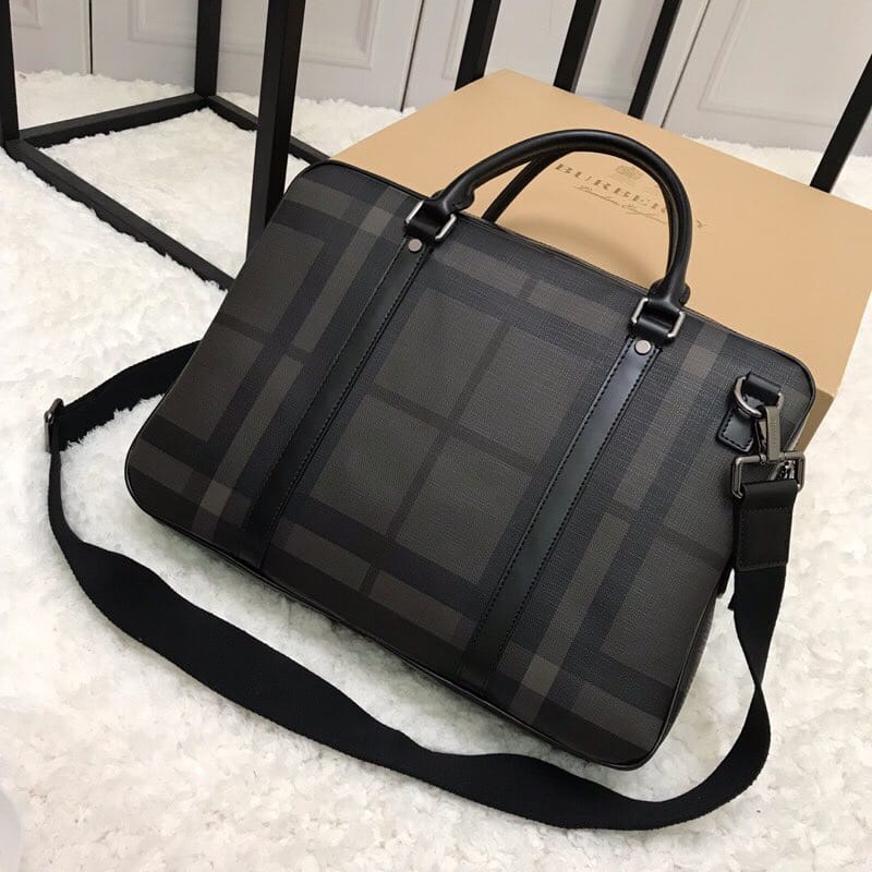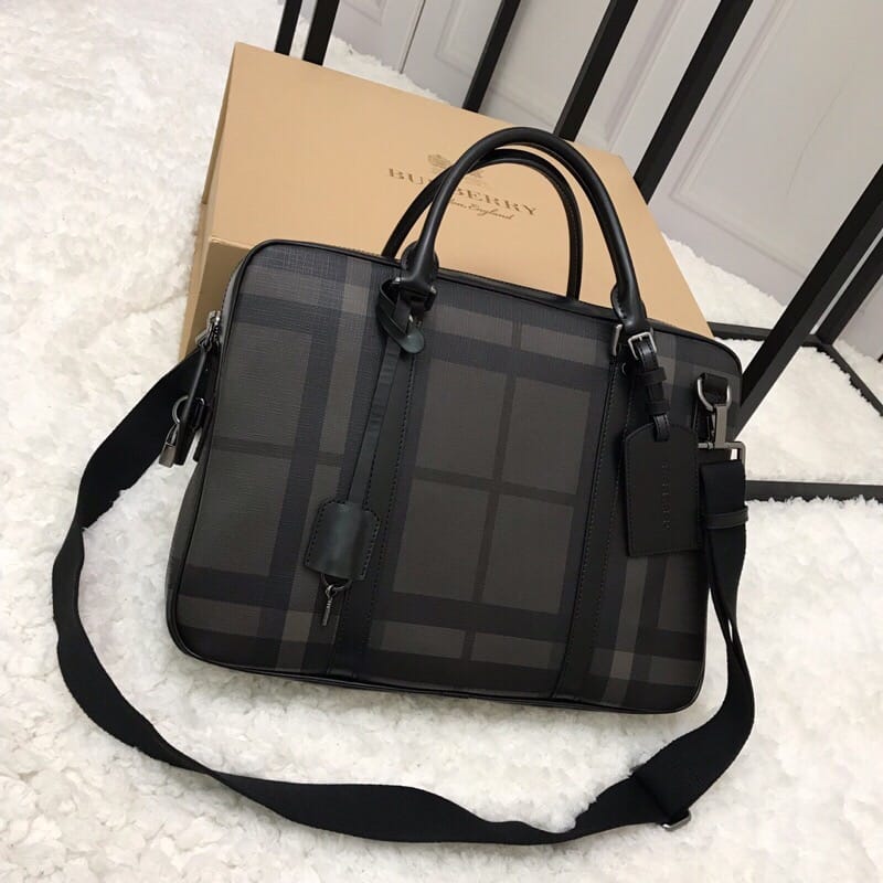 【B家顶级原单】烟熏格纹公文包,匠意搭配光滑的皮革装饰,包口