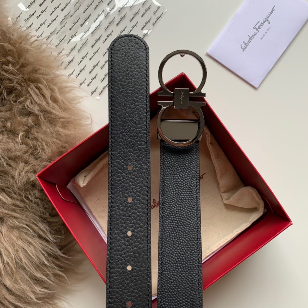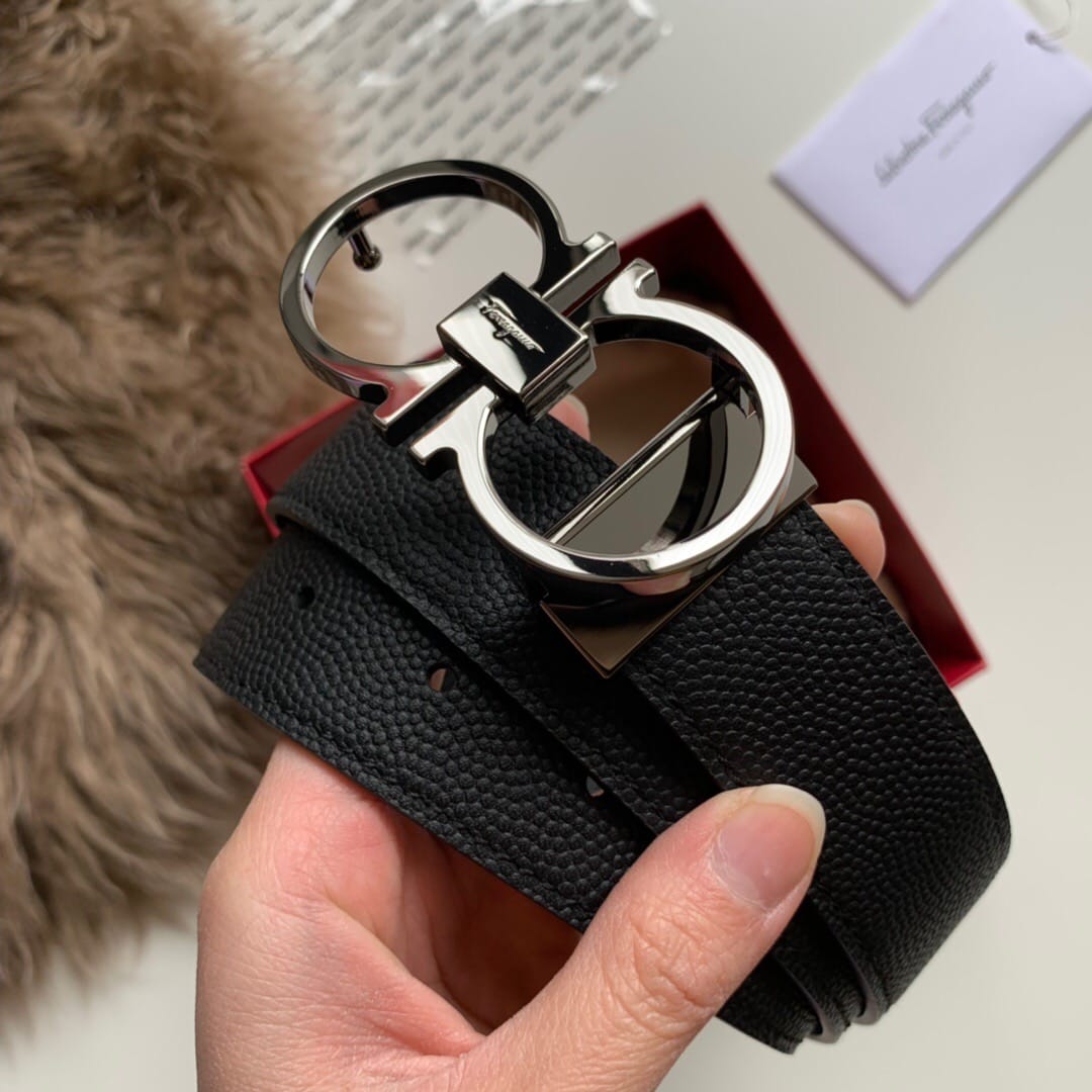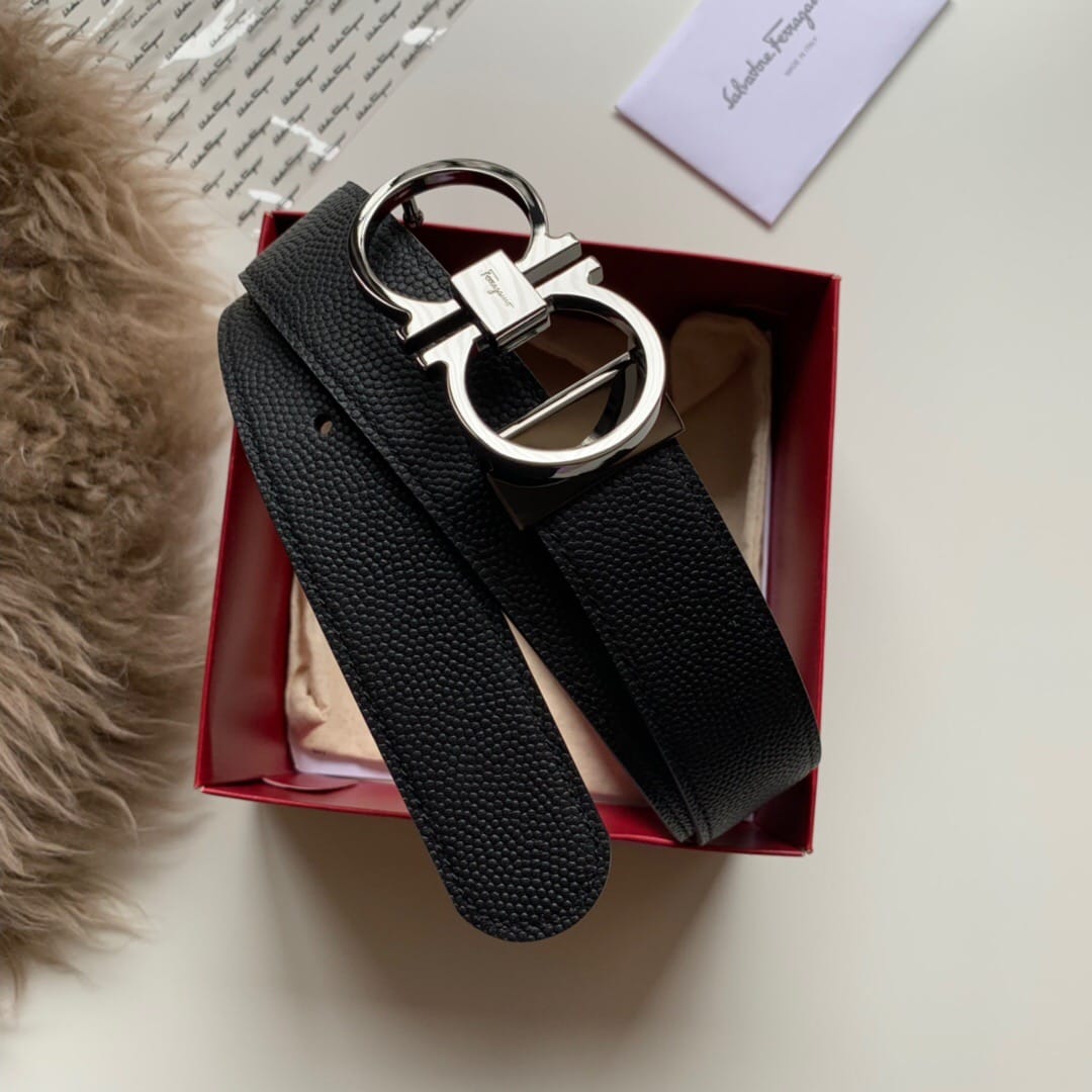 {菲拉格慕}男士腰带!经典亮面扣 头层牛皮?双面手搓纹?带身
