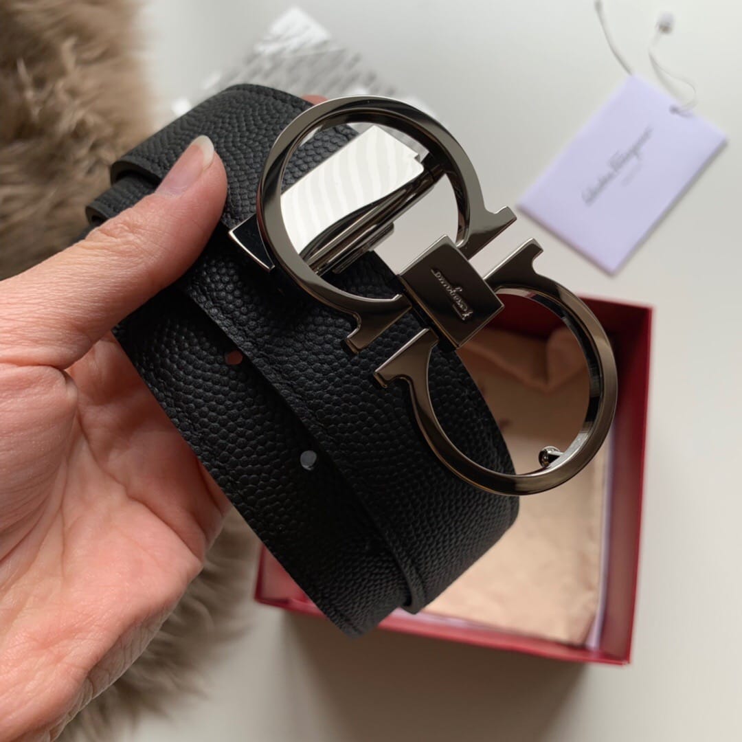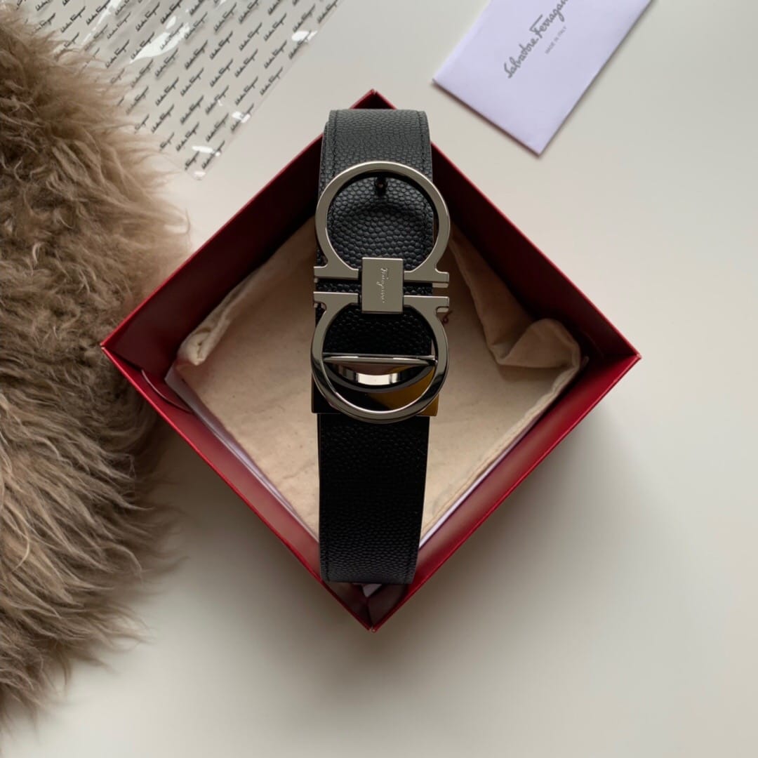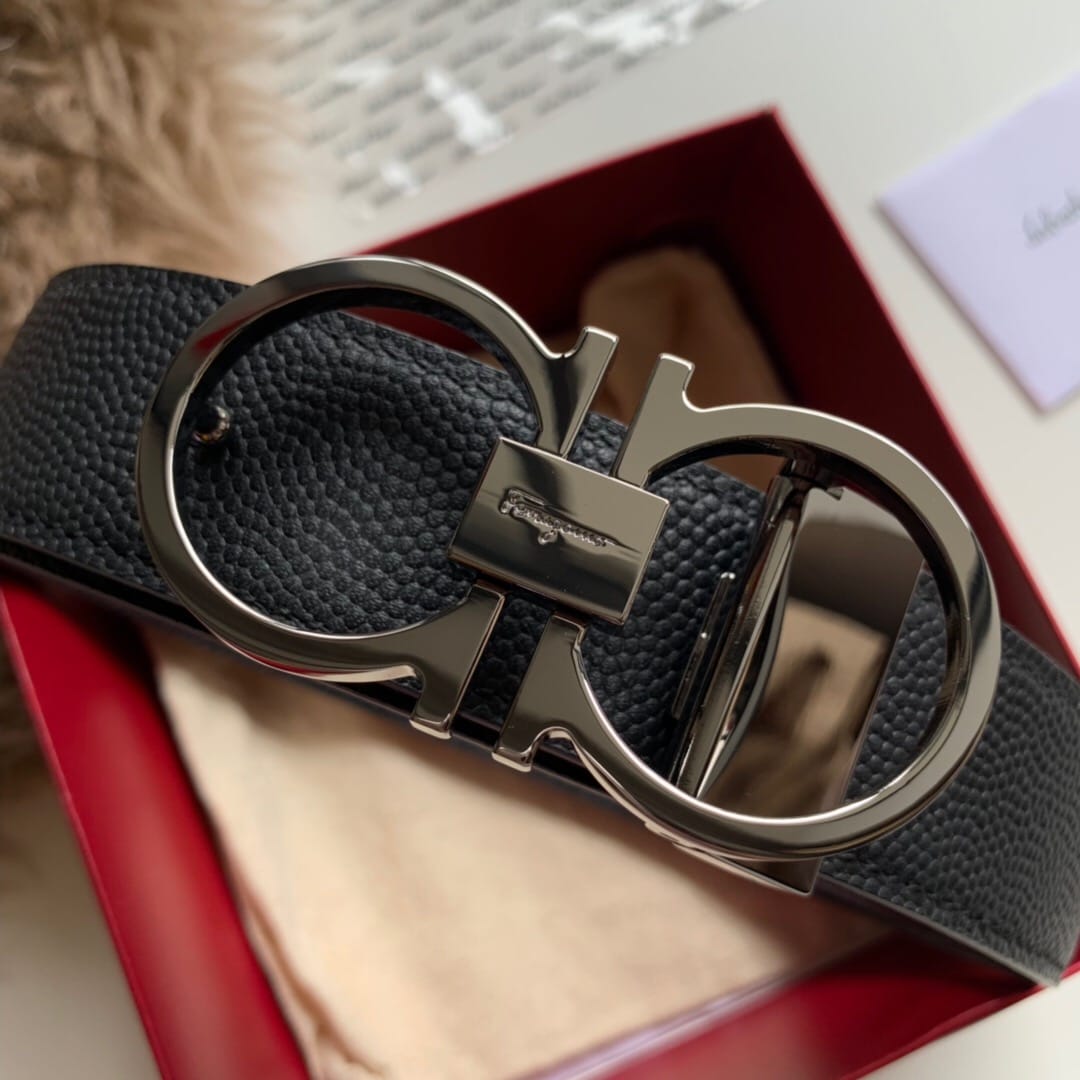 {菲拉格慕}男士腰带!经典亮面扣 头层牛皮?双面手搓纹?带身