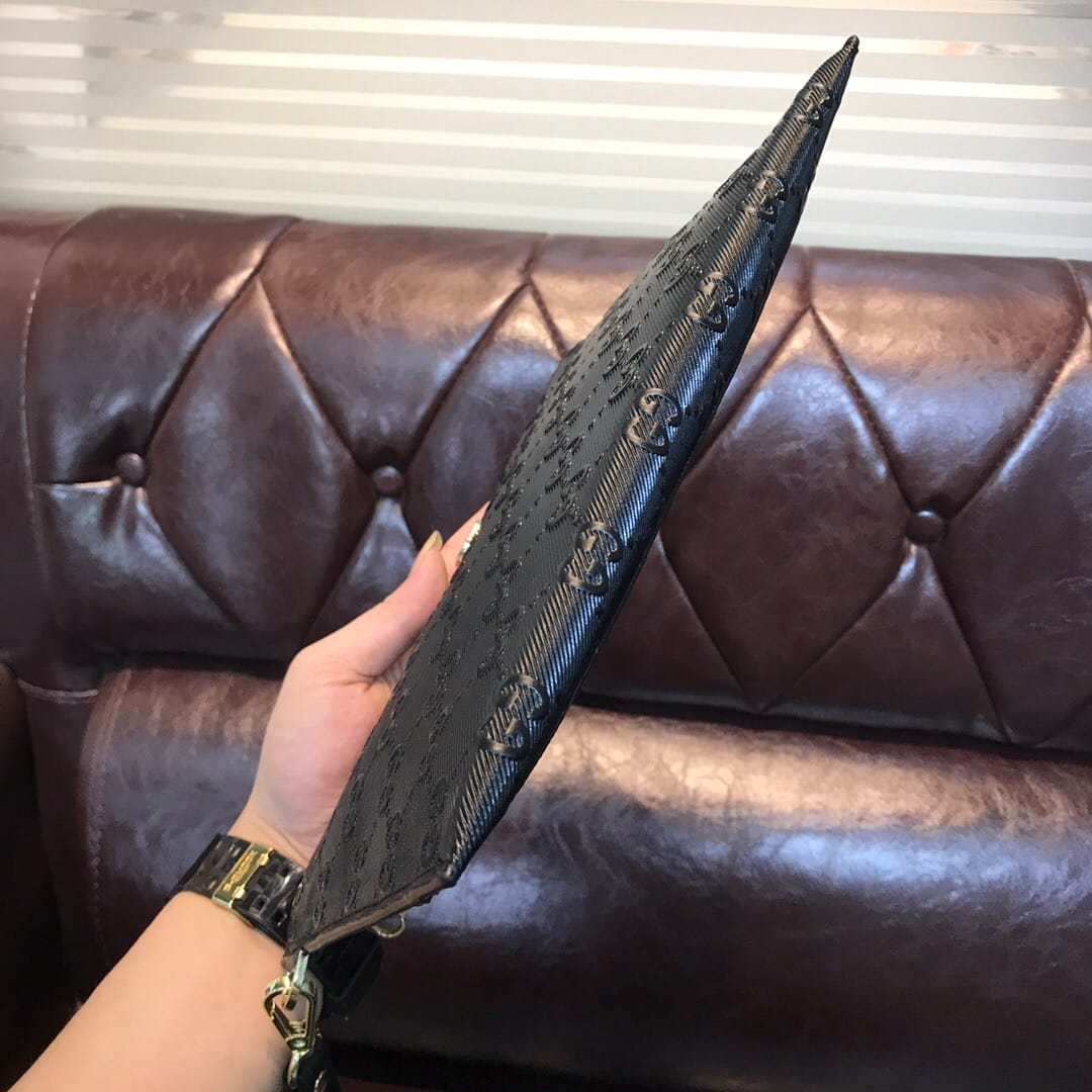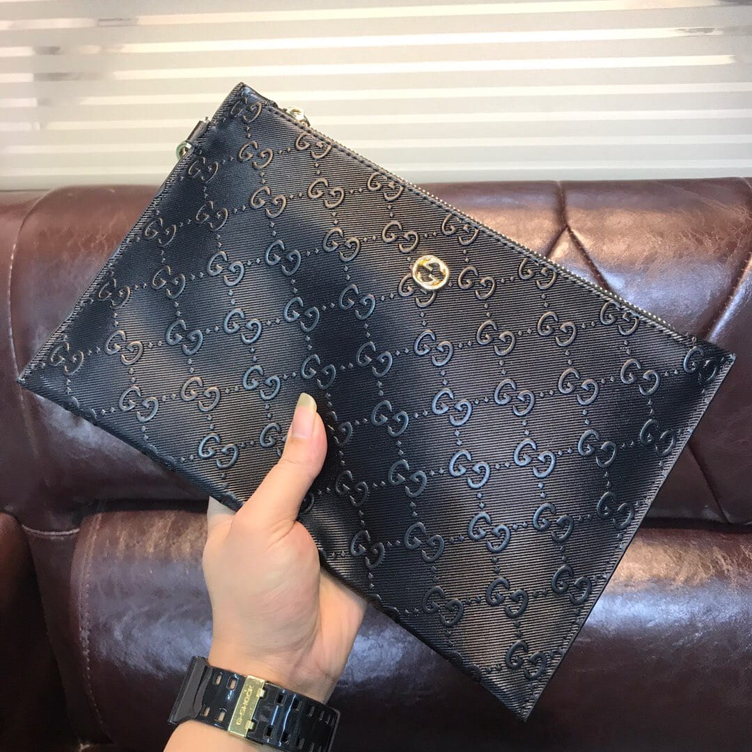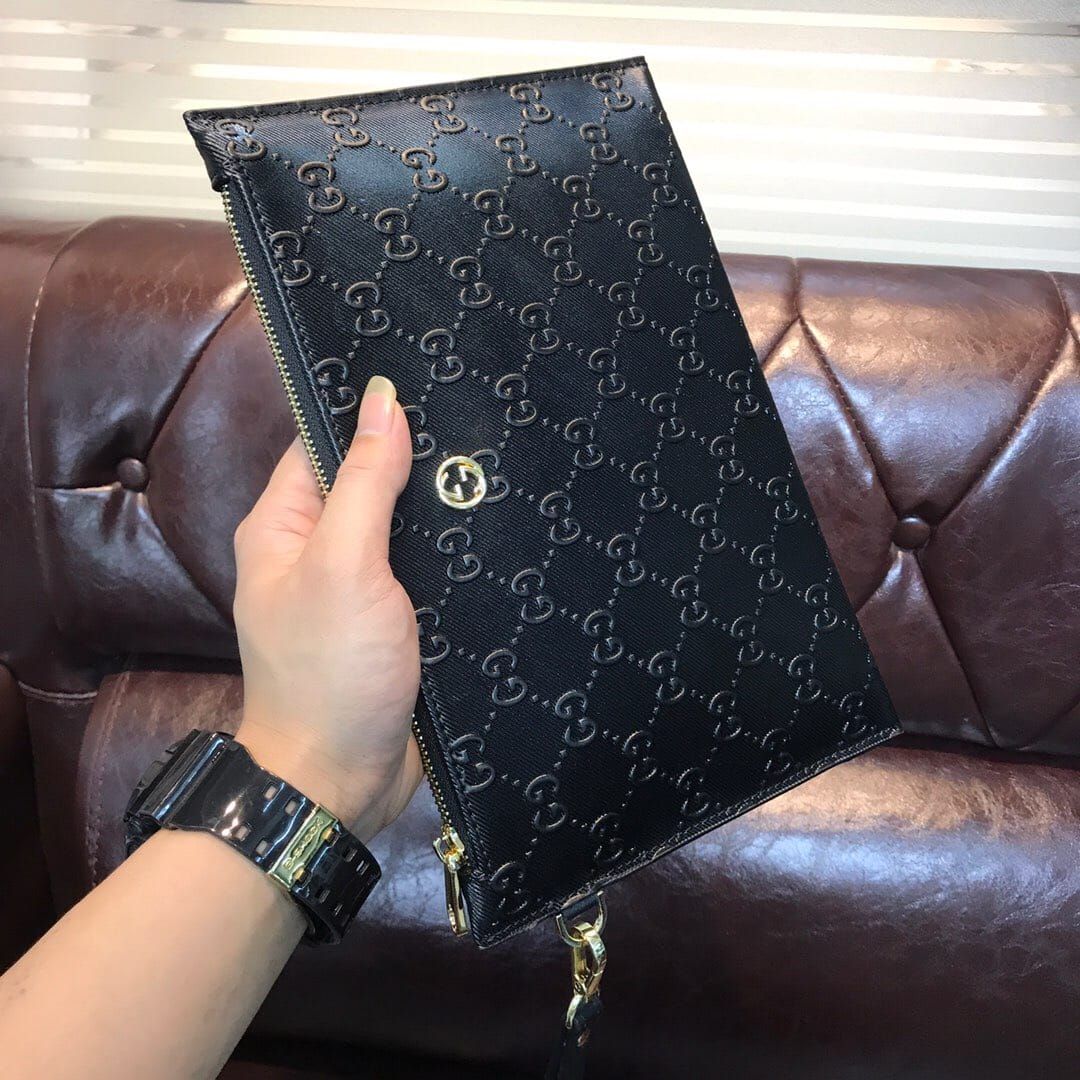 新款??黑色牛皮实用手包,春夏秋冬必备款,除了压上大家喜欢的双G Logo外,此款设计亮点,立体配金色拉链,尽显低调奢华。强力推荐!!!这款包包不挑人,不仅可以送男友,送长辈、看中的赶紧下手[色][色][色]不要在犹豫了,尺寸28.18 型号 148-5