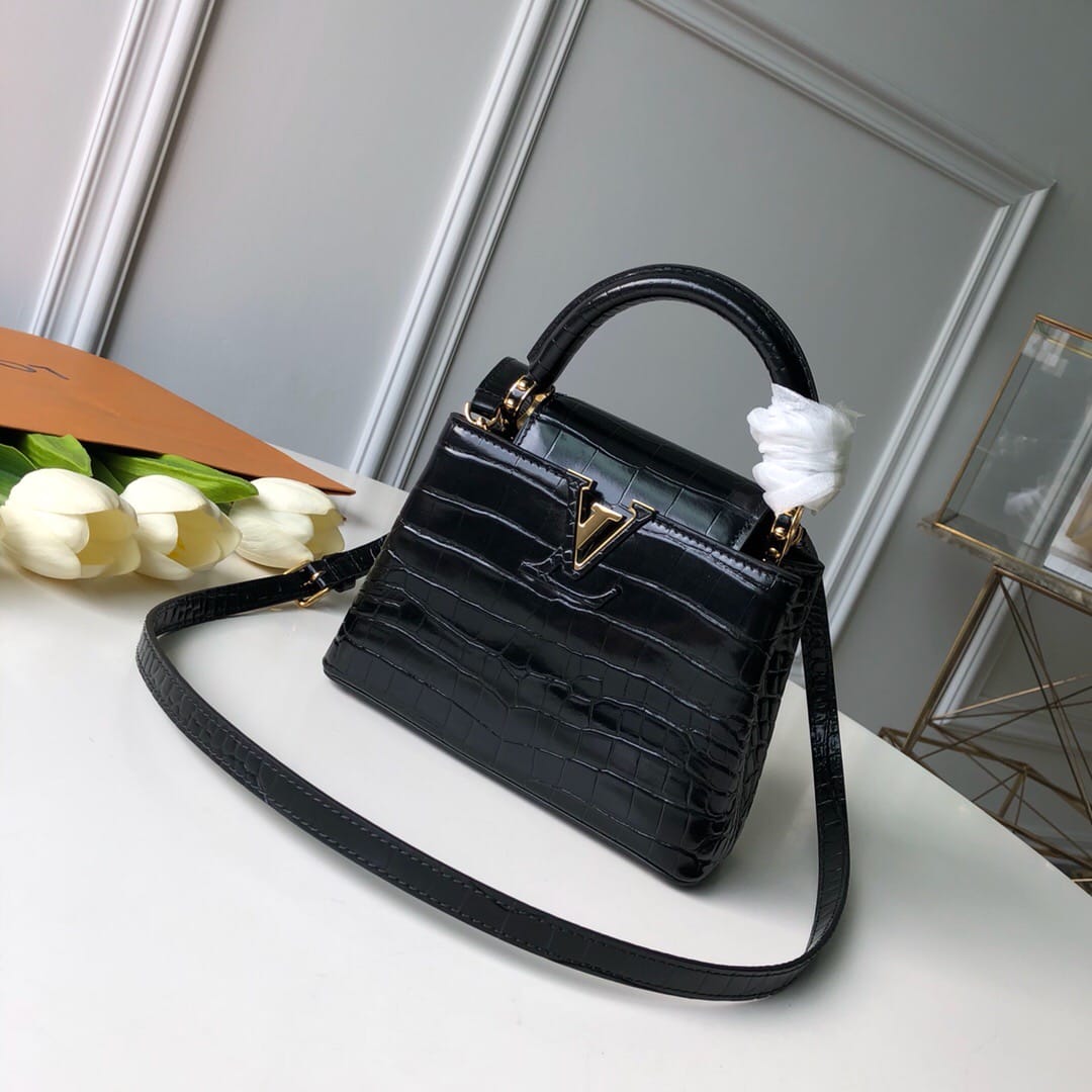 原单 N92173 ?黑色 进口头层鳄鱼纹 尽显女装艺术总