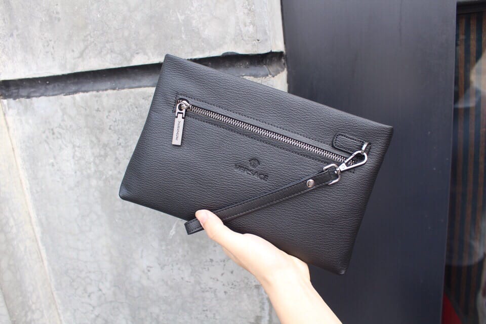 FENDI 芬迪 拉链开合薄手拿包。黑色小牛皮制作。缀以双F