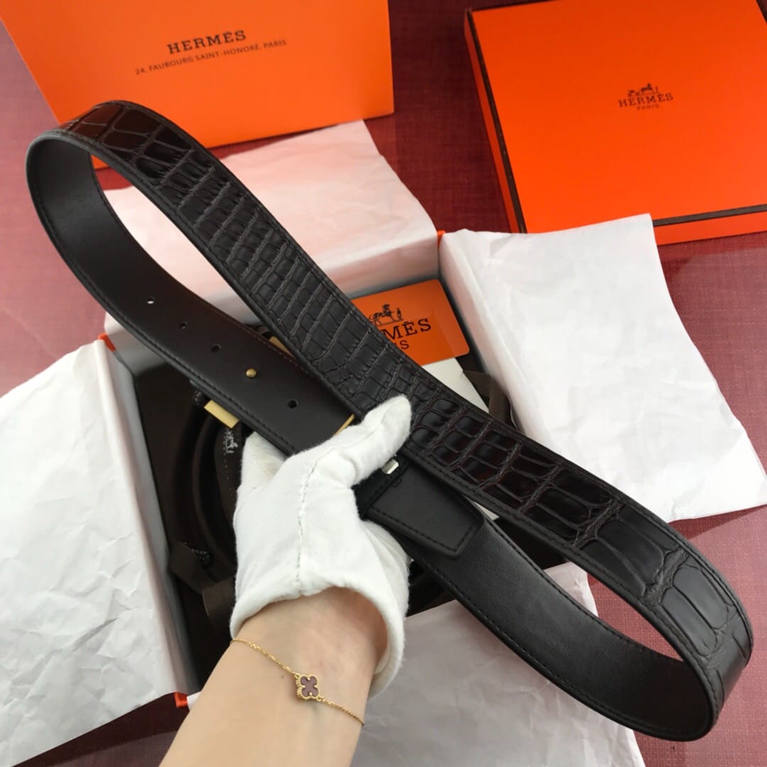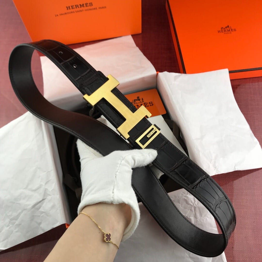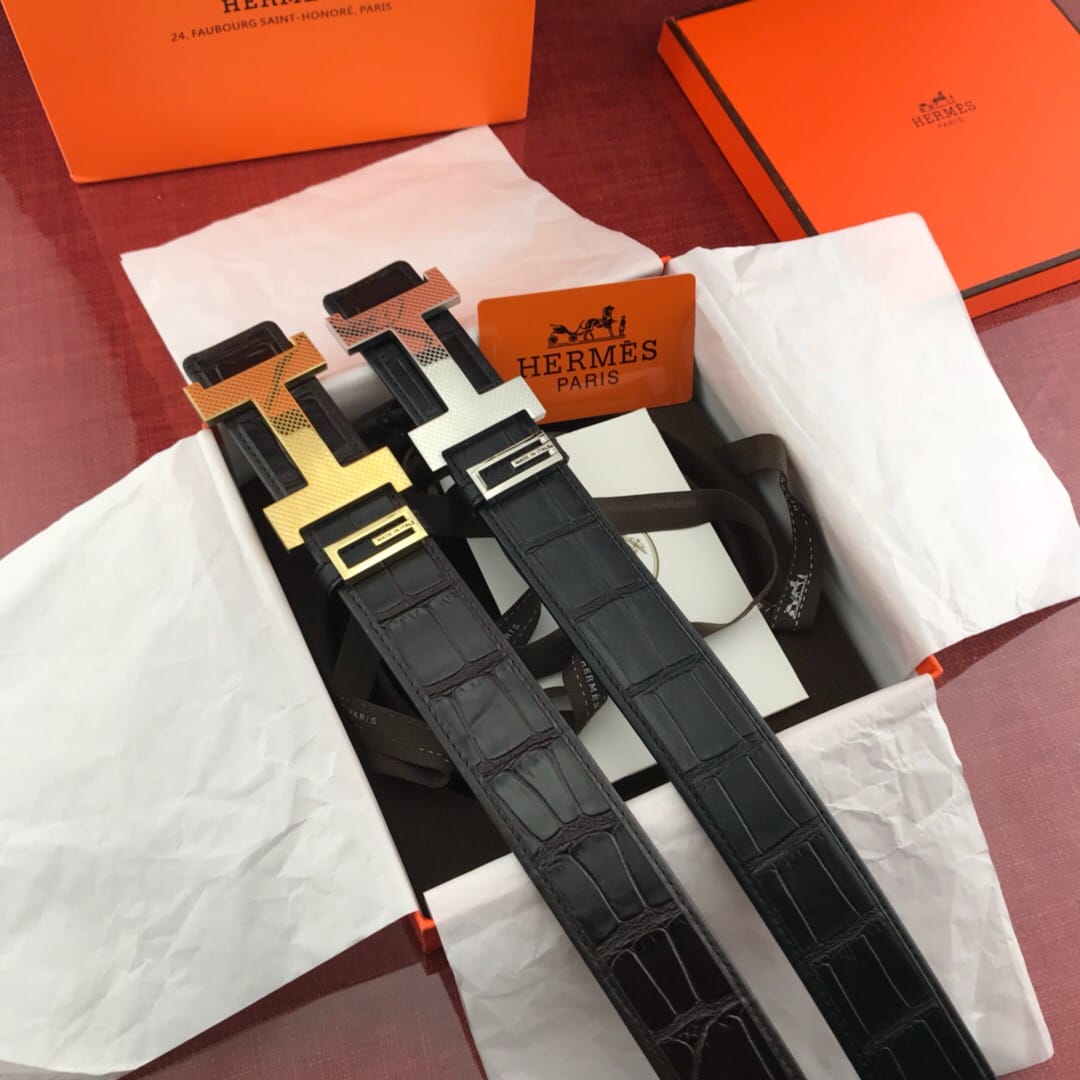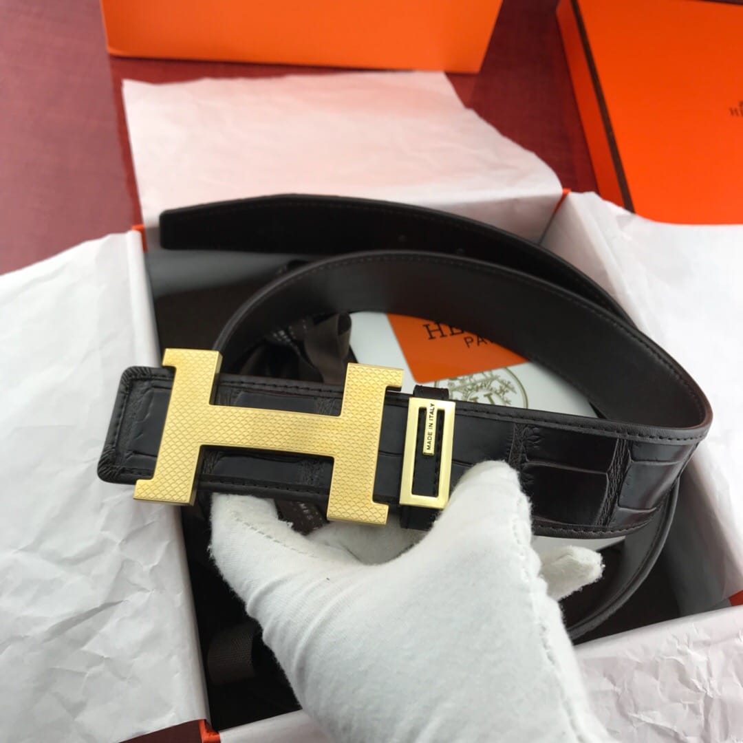 {爱马仕}男士腰带!新款钢扣 头层牛皮?包边鳄鱼纹?质量保证
