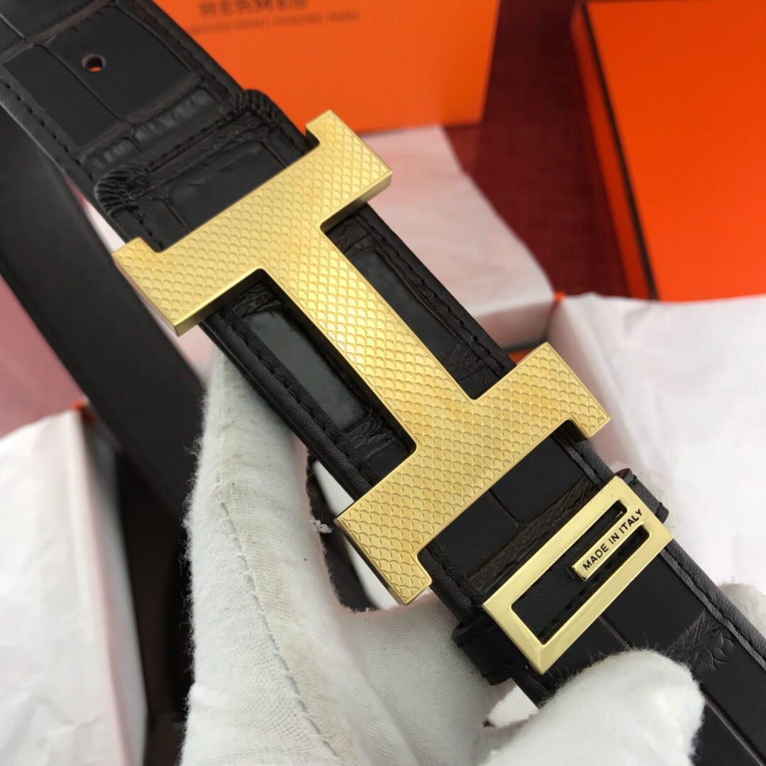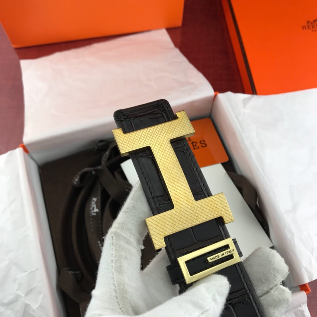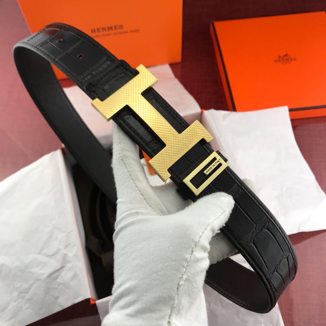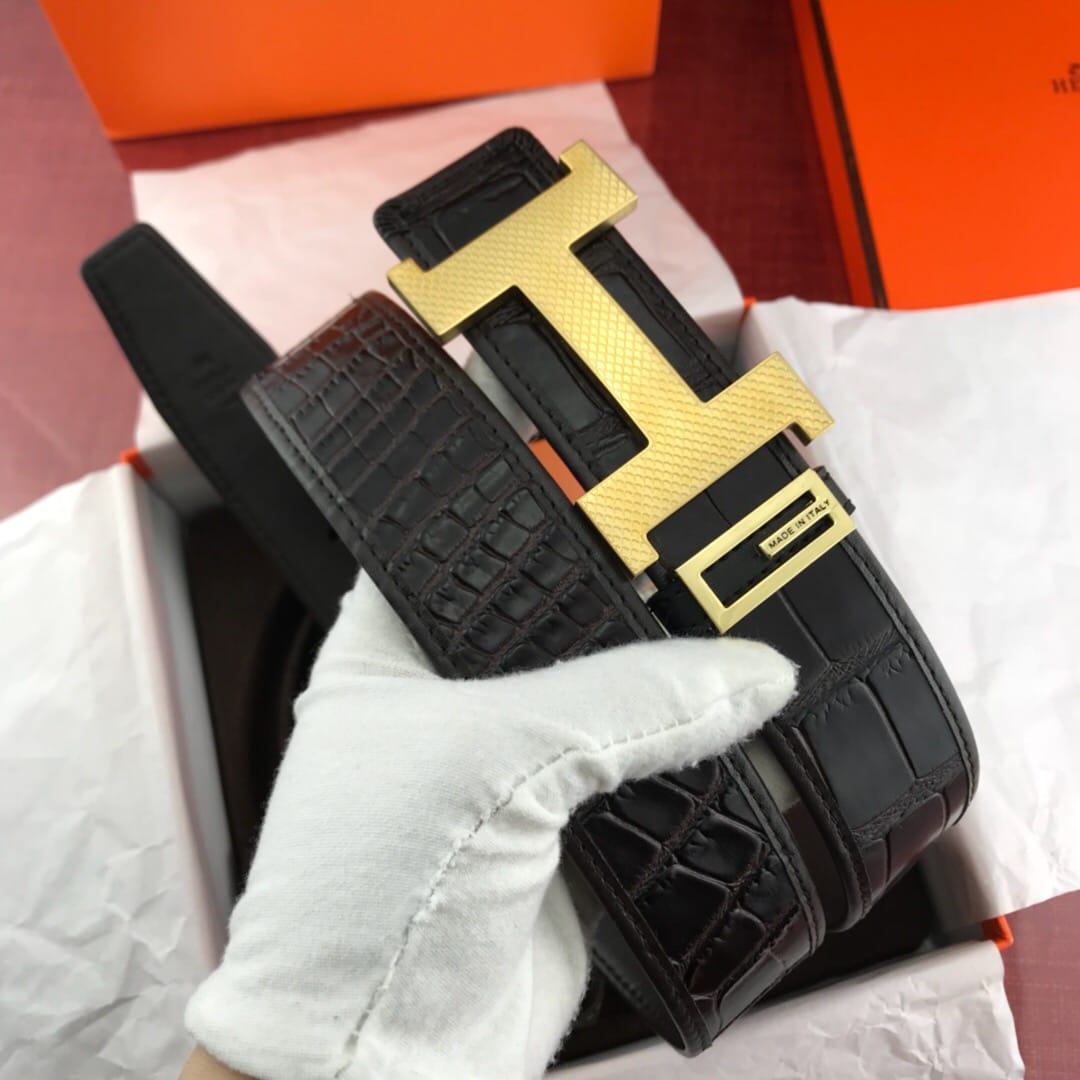 {爱马仕}男士腰带!新款钢扣 头层牛皮?包边鳄鱼纹?质量保证