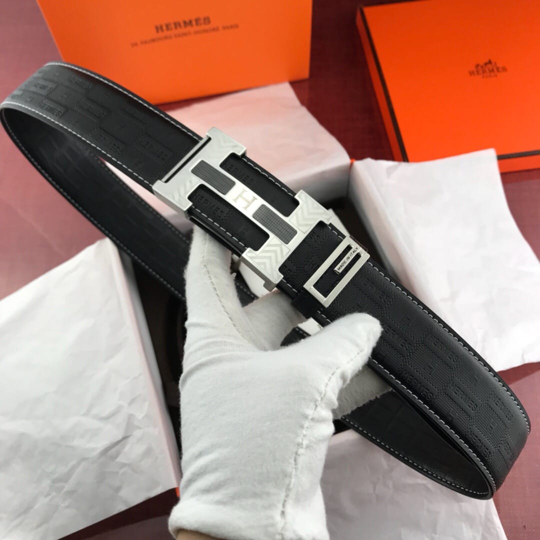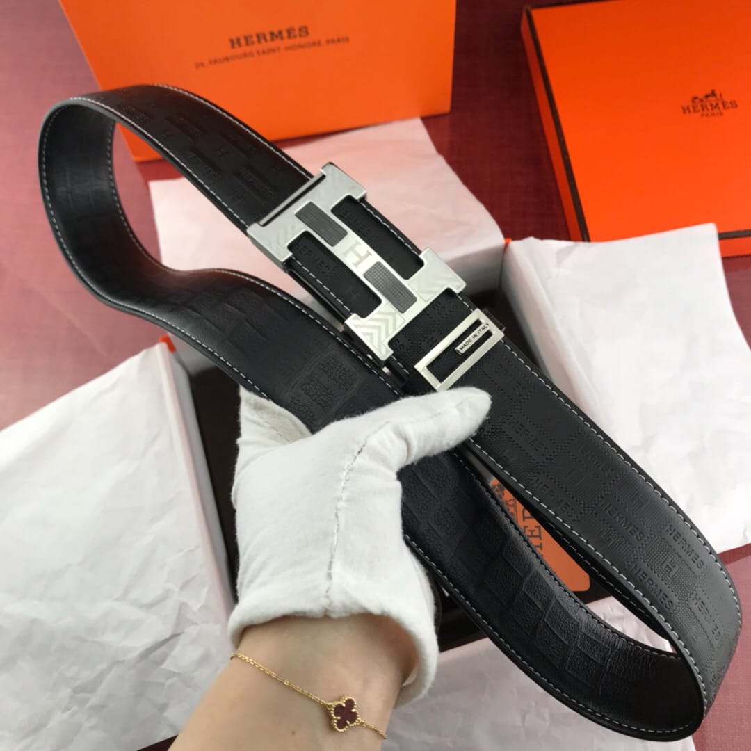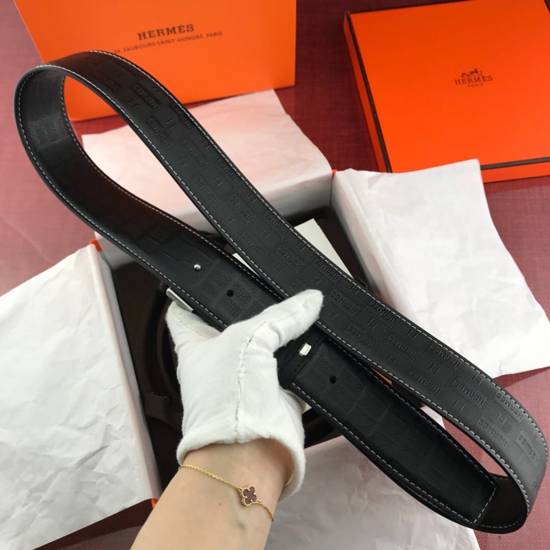 {爱马仕}男士腰带!新款钢扣 牛皮?压花纹 质量看细节图?带身宽:3.8cm