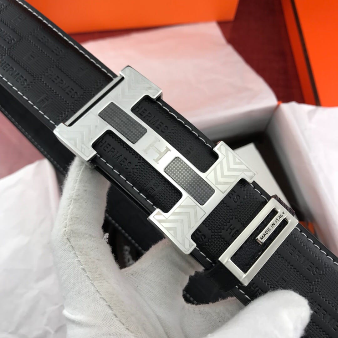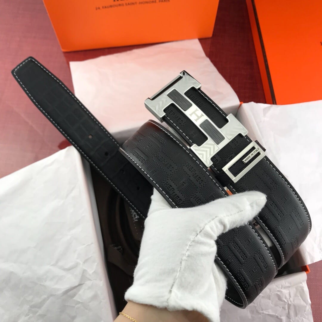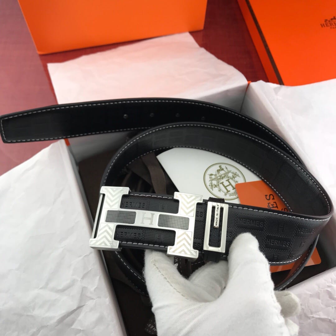 {爱马仕}男士腰带!新款钢扣 牛皮?压花纹 质量看细节图?带身宽:3.8cm