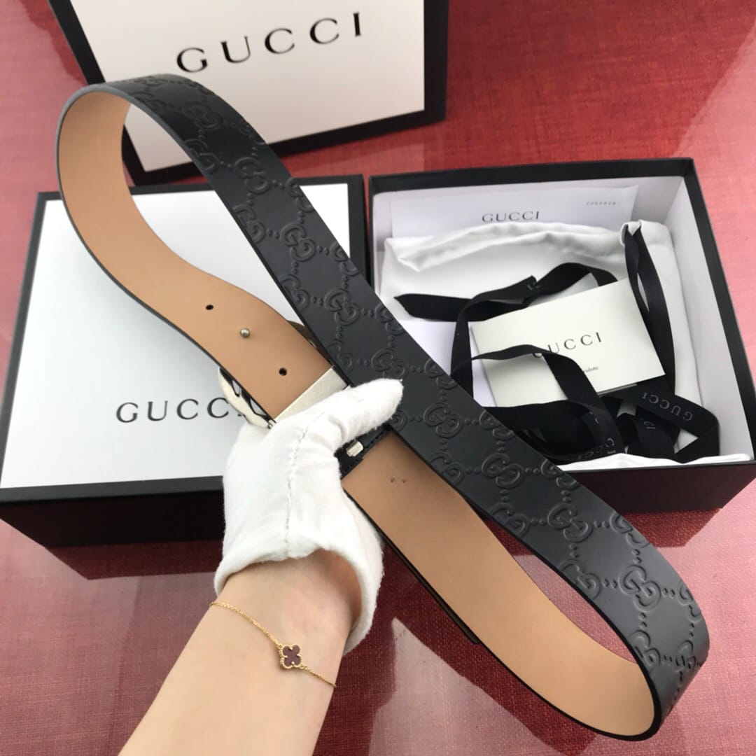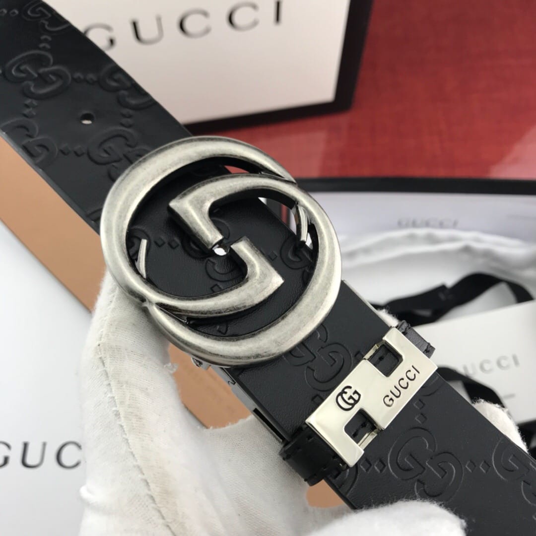 {古驰}男士腰带!新款钢扣 头层牛皮?猪皮纹 带身宽:3.8