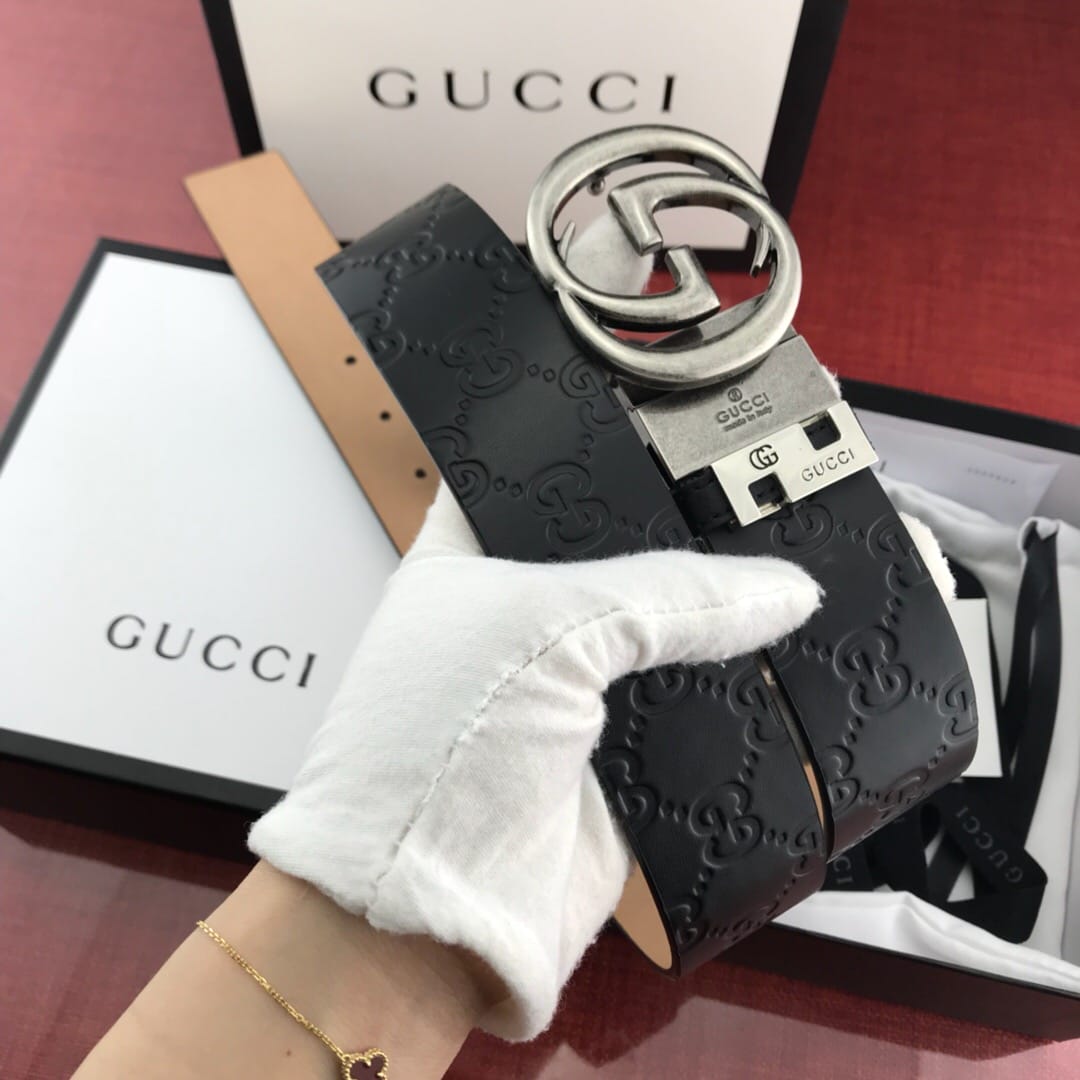 {古驰}男士腰带!新款旋转铜扣 头层牛皮?压花纹 比拼专柜质