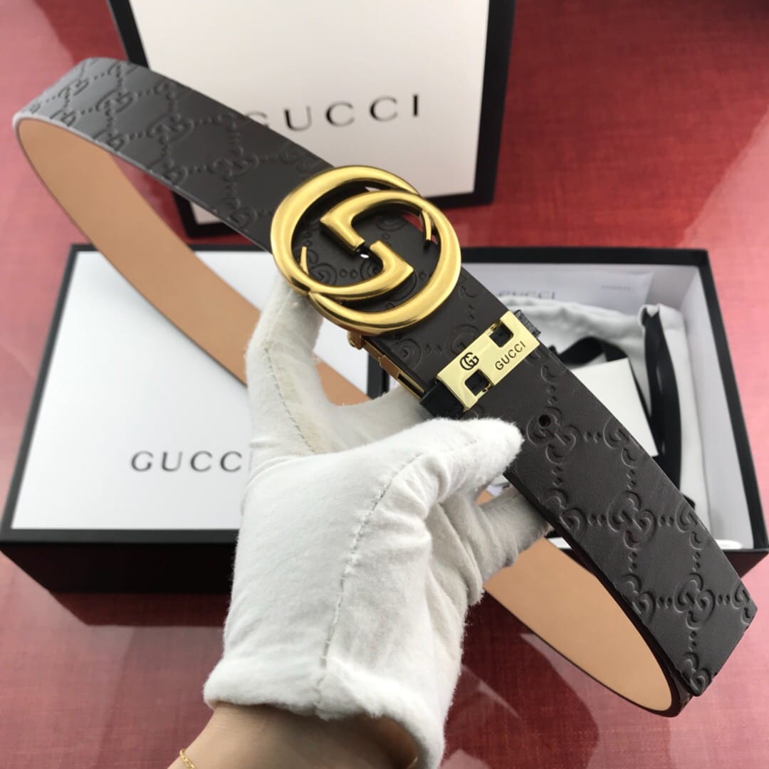 {古驰}男士腰带!新款旋转铜扣 头层牛皮?压花纹 比拼专柜质量?带身宽:3.8cm