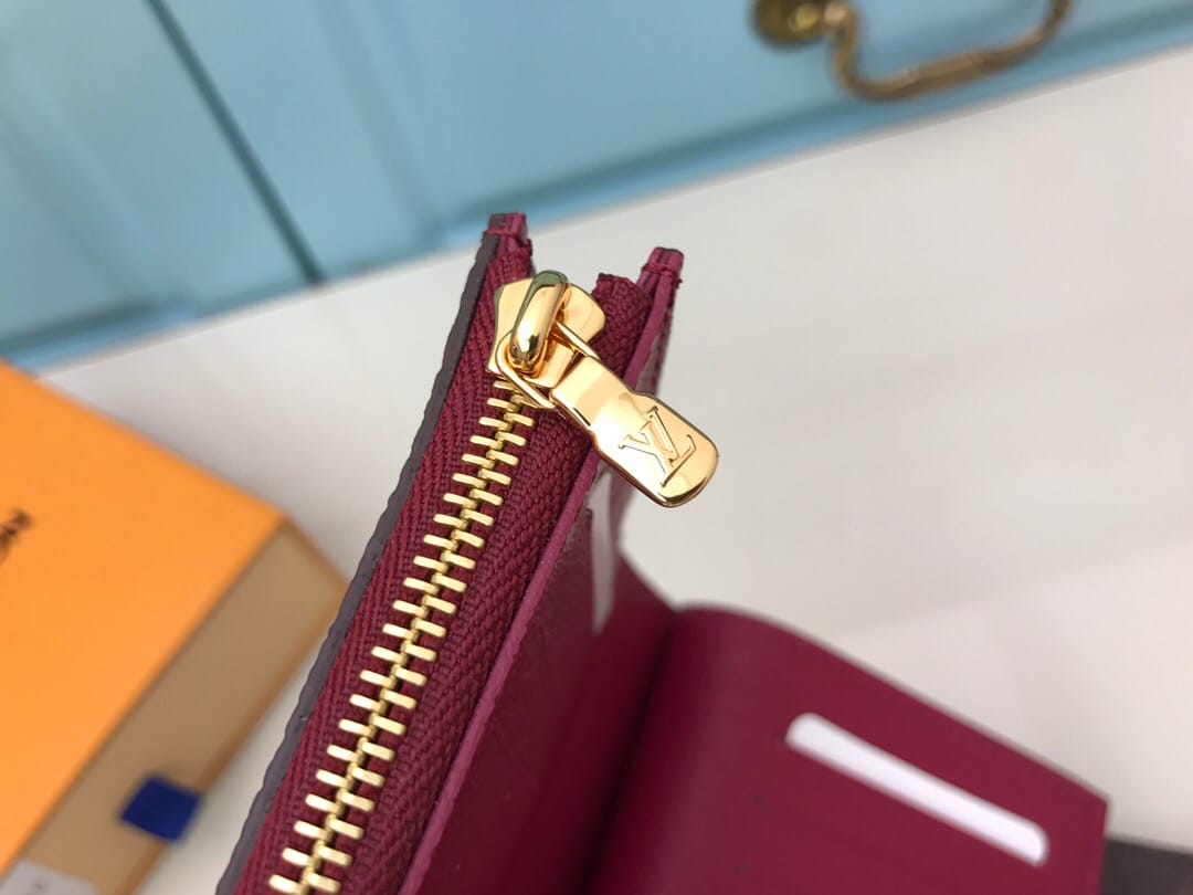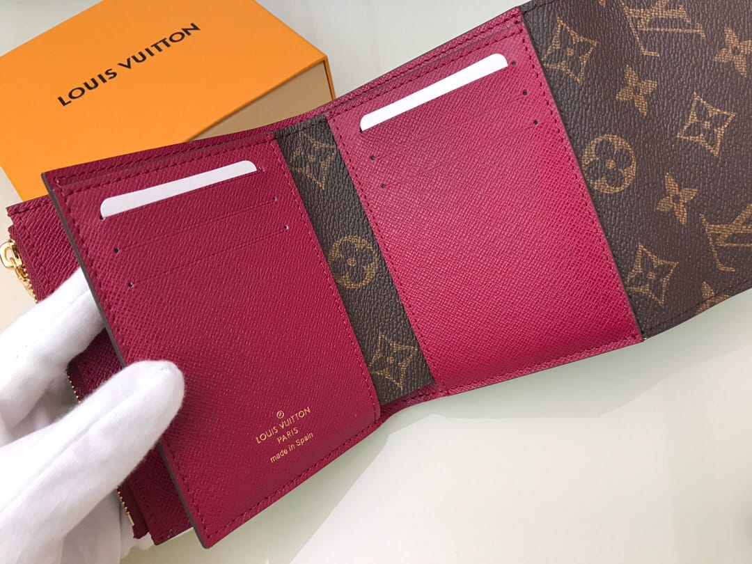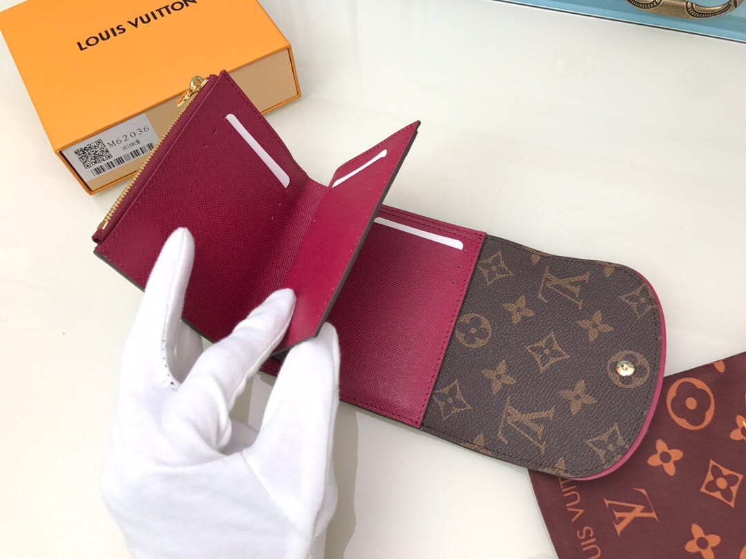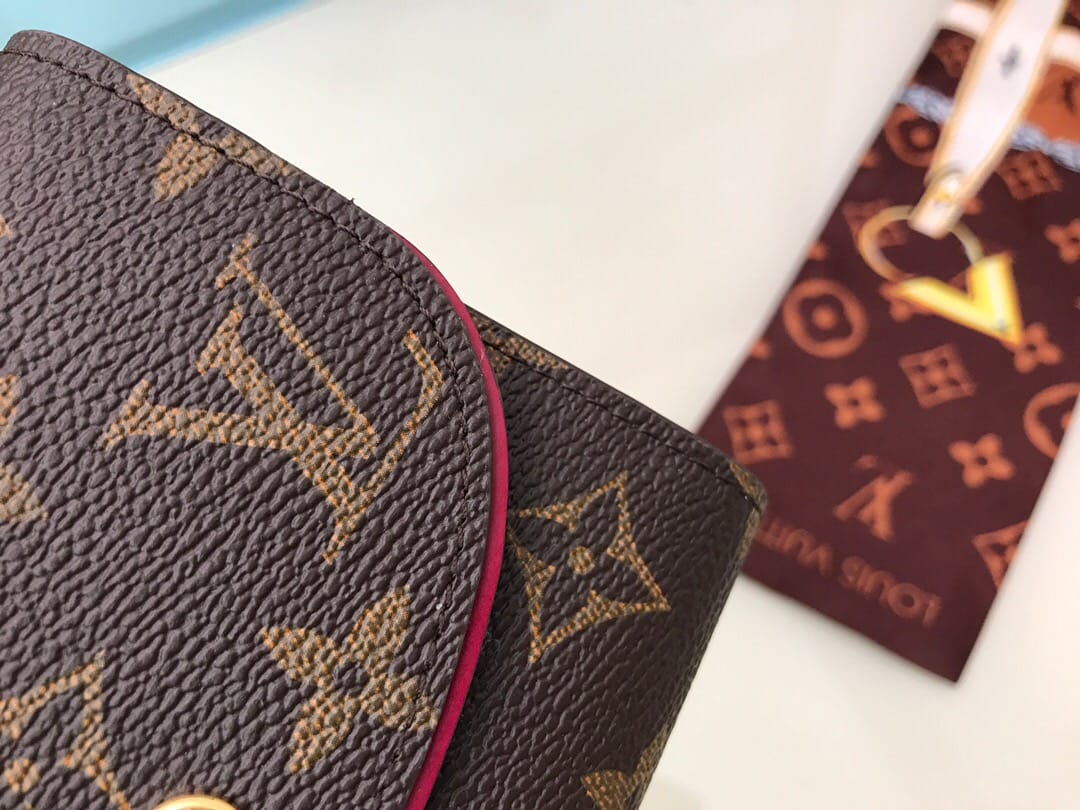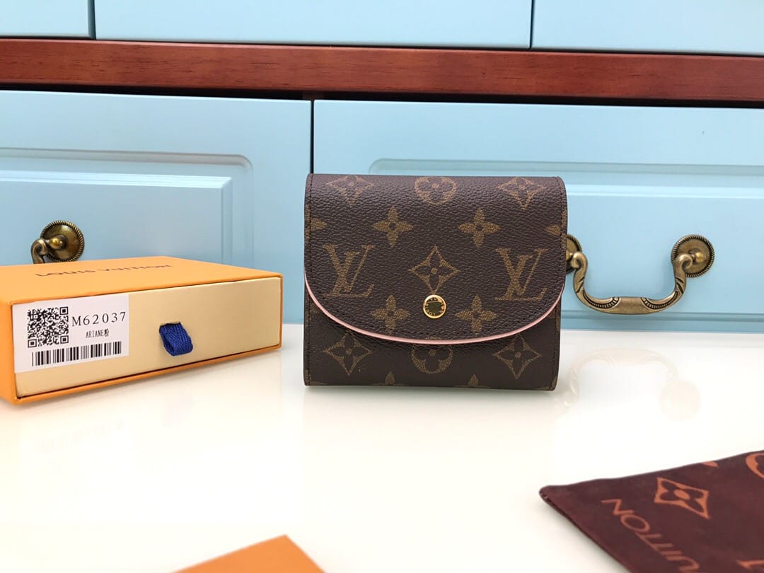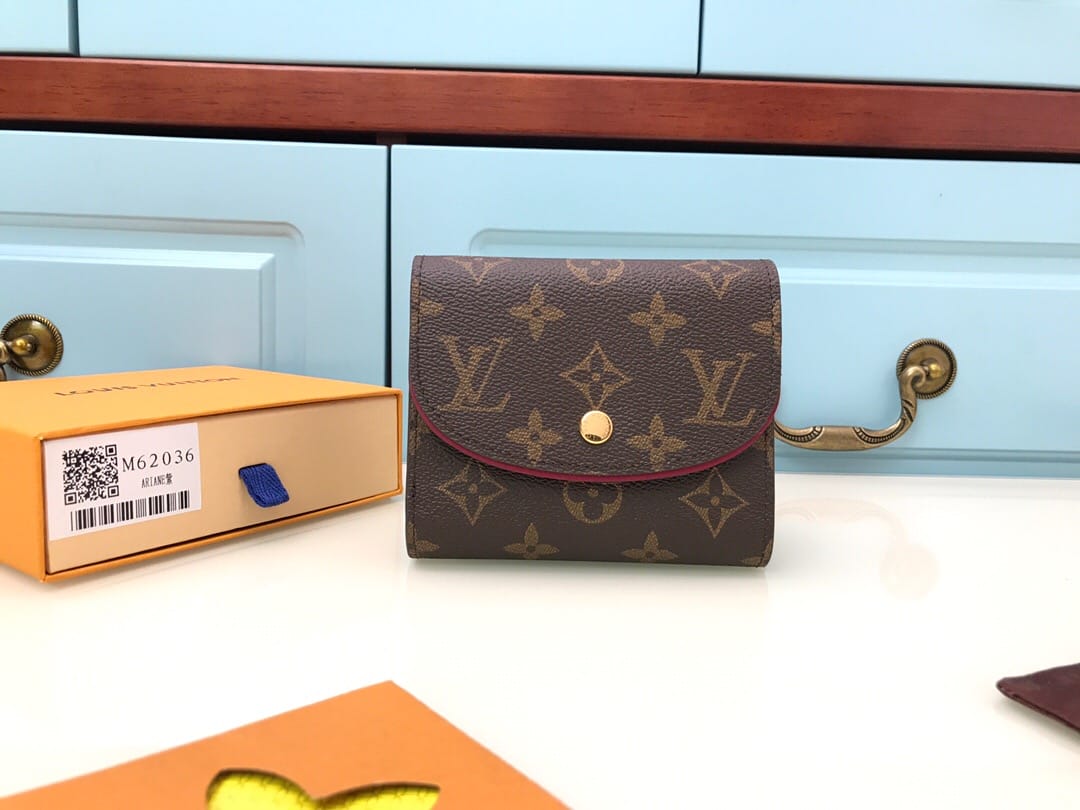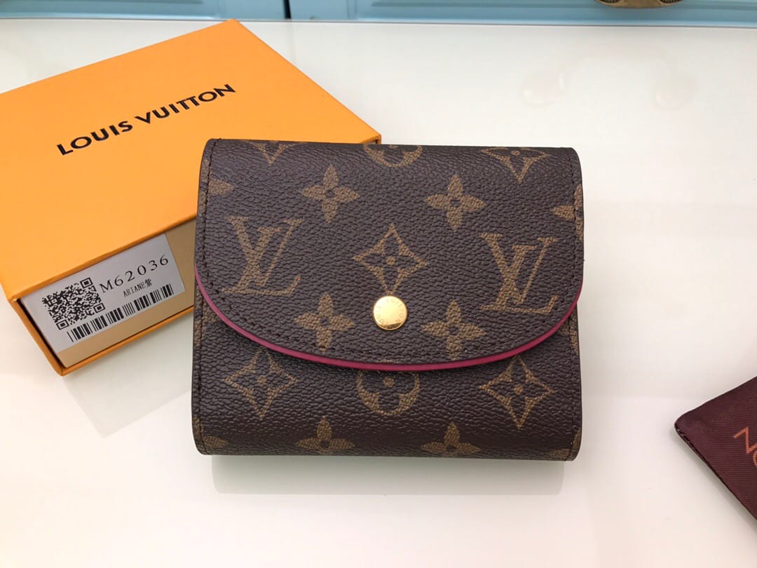 【顶级原单】M62036紫红??尺寸小巧而结构精妙,此款Ariane钱夹配有多个信用卡插槽以及丰富的内袋。搭盖四周的彩色纹饰为Monogram帆布增添些许秀气与精致。尺寸:12x10.5x2.5cm,包装:配包装盒,